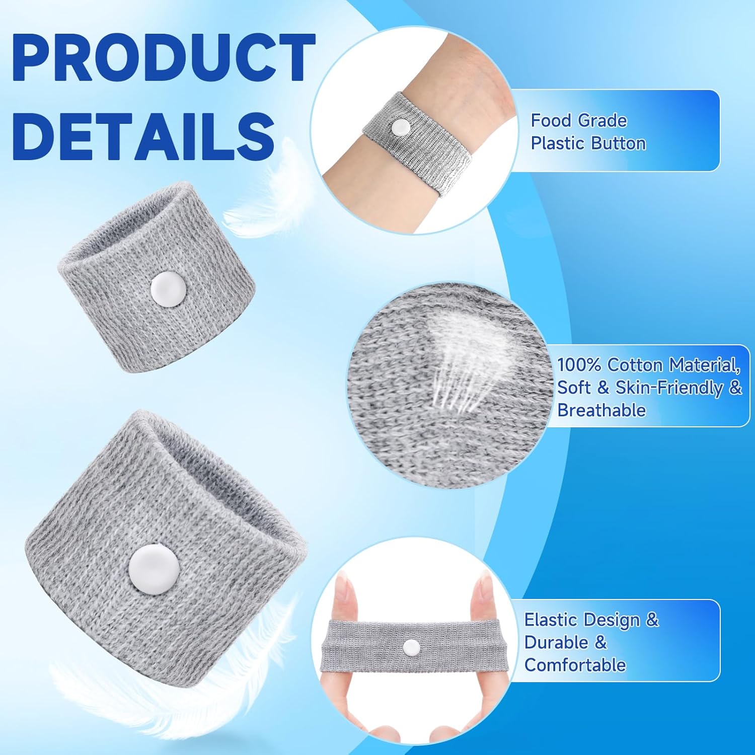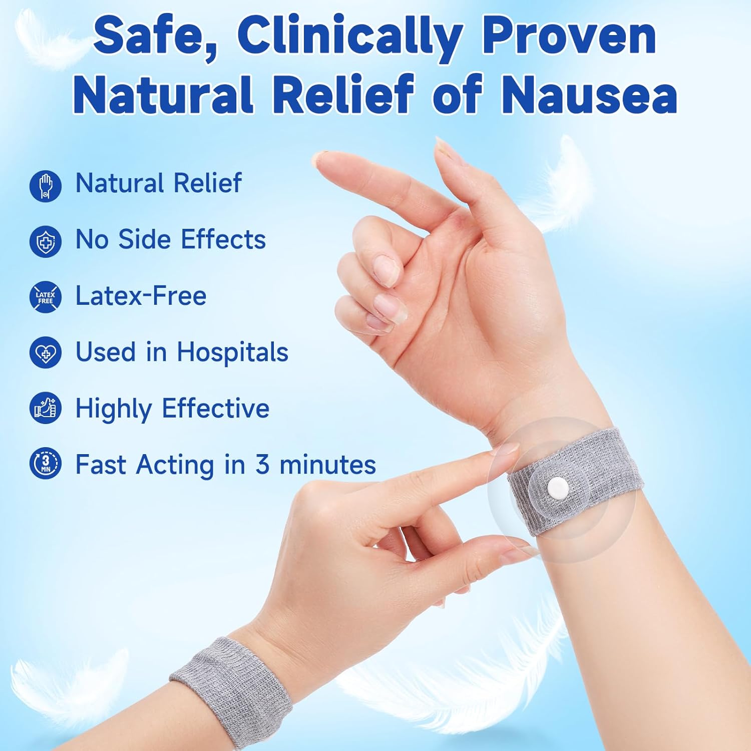 【緩解噁心】:暈車帶非常適合減輕孕吐、孕吐、暈船、暈車、暈機和任何其他旅行暈動病。 【健康有效】:將圓形按鈕佩戴並放在手腕內側的兩根肋骨(內關穴)之間,兩隻手同時佩戴效果更佳。 【無藥物或副作用】:這種無藥腕帶是一種自然的選擇,不會引起困倦或其他副作用。這是緩解暈動病最健康的方式,因為它不含藥物或任何副作用。 【通用尺寸適合所有人】這些腕帶採用柔軟的棉質材料和強力彈性設計,適合所有兒童和成人舒適佩戴。 【揮手告別噁心】:不要讓您的旅行或遊輪體驗被毀掉;緩解暈船並享受旅程!或使用 LYJEE 腕帶緩解孕吐,享受懷孕的樂趣!