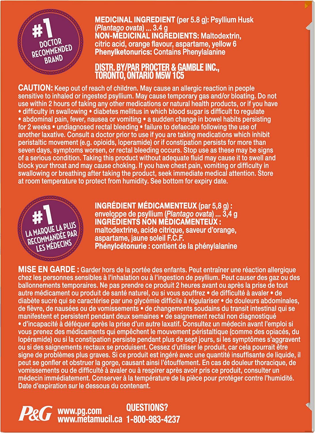 Metamucil, 每日車前子殼粉補充包,無糖,四合一膳食纖維,促進消化健康,橙味順滑飲料,44 份