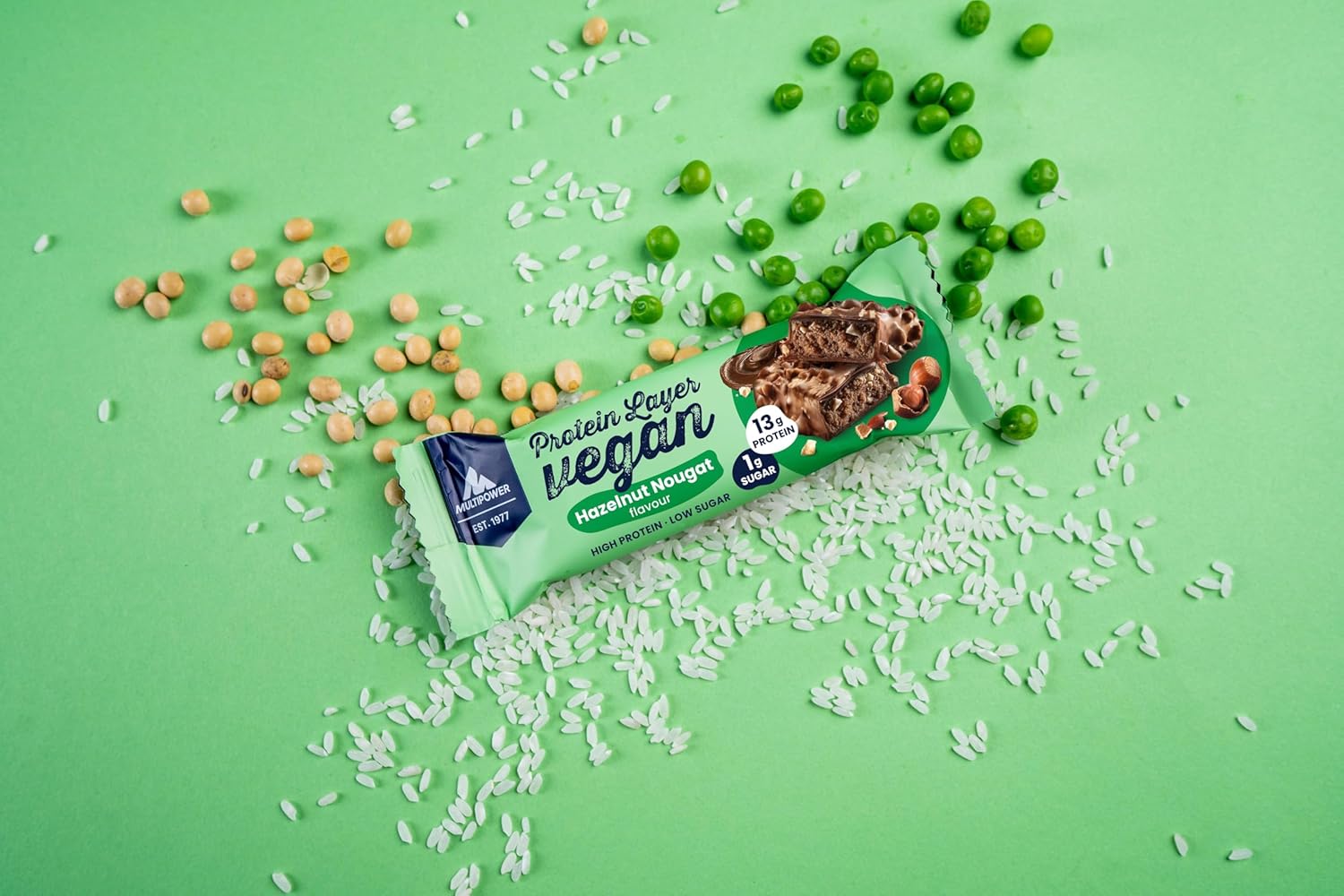 Multipower 純素多層榛果牛軋糖棒,以香脆的餅底,融合榛果與牛軋糖的醇香。專為純素生活方式人士配製,提供營養豐富、富含蛋白質的零食選擇,以健康的方式滿足您對甜食的渴望。