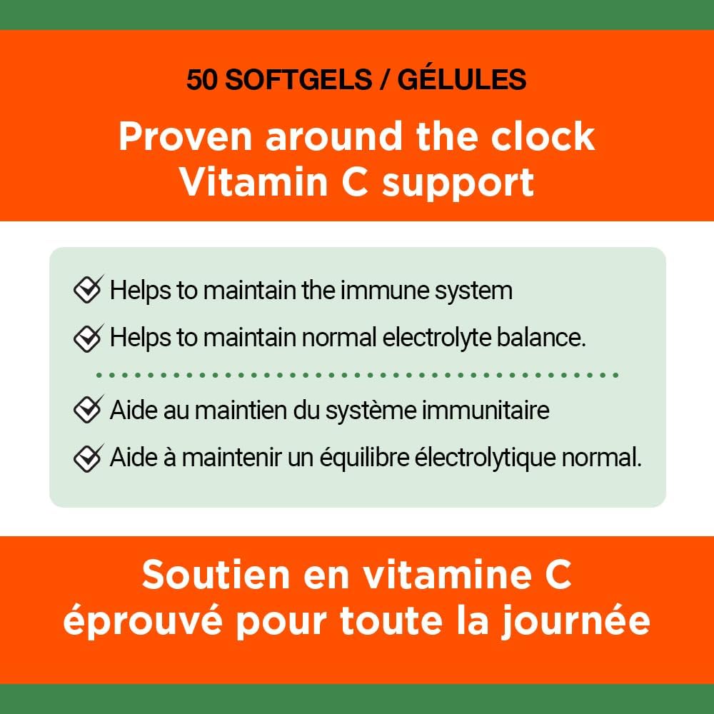 Nature's Bounty 免疫力增強軟膠囊富含酯化維生素C、維生素D、鋅、接骨木果和紫錐菊,全天候提供維生素C支持,幫助維持免疫系統健康。每日只需服用2粒軟膠囊,即可幫助維持體內正常的電解質平衡。祝您健康,加拿大。