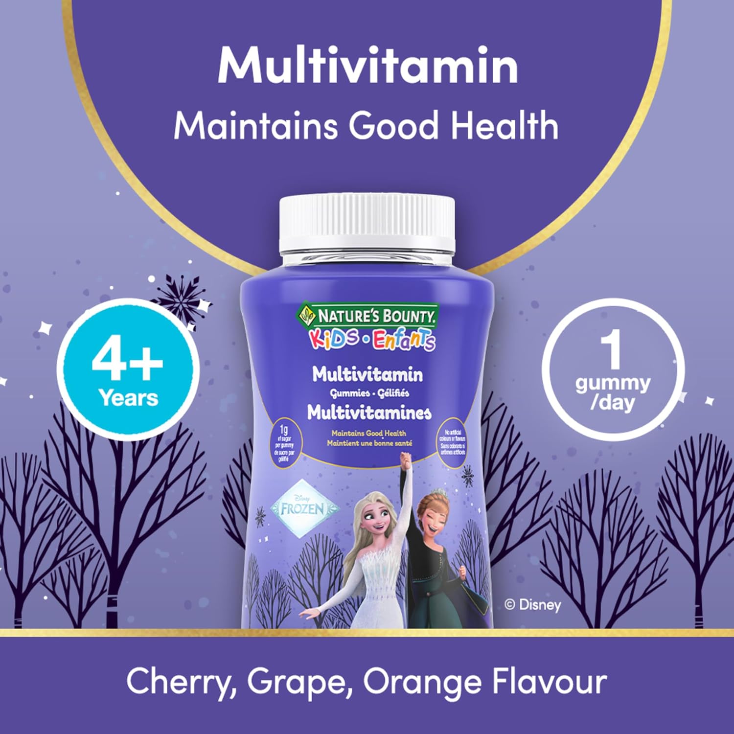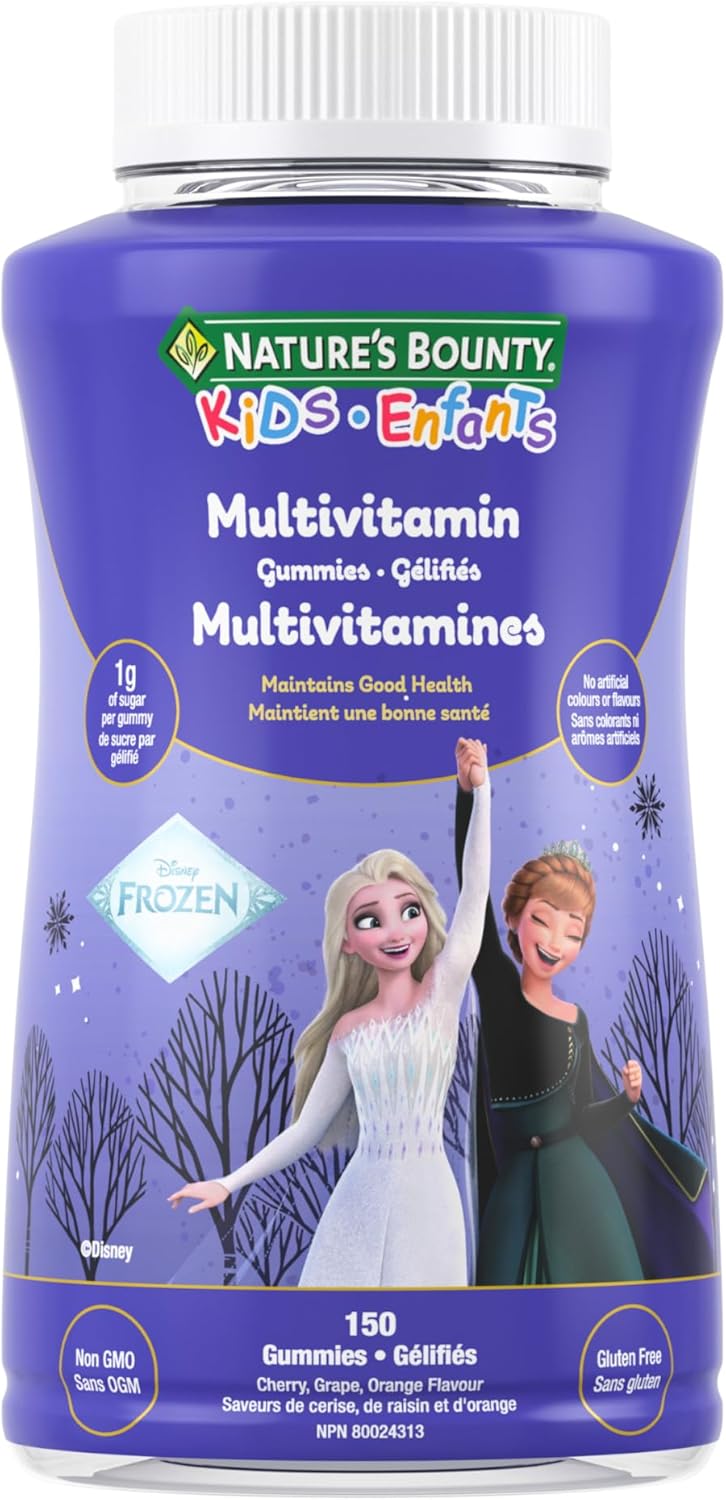 40 多年來,NATURE'S BOUNTY 始終以您為中心,研發維生素和營養補充品。您服用維生素是為了幫助身體保持最佳狀態——那麼,何必糾結於其他品牌的維生素呢?今天就來試試 NATURE'S BOUNTY 吧! NATURE'S BOUNTY 迪士尼冰雪奇緣兒童複合維生素有助於維持身體健康。它們能夠增強免疫功能、增強眼部健康,並照顧牙齒和骨骼。這些軟糖富含抗氧化劑,每粒僅含 1 克糖,不含麩質,並有櫻桃味、葡萄味和橙味三種美味口味可供選擇。 4 歲以上兒童及青少年每日服用一 (1) 粒軟糖。請與食物同服,並在服用其他藥物或天然保健品前或後幾小時服用。