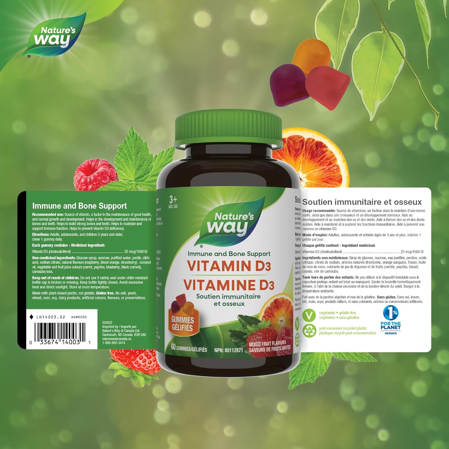 NATURE'S WAY 維生素 D 軟糖:隆重介紹 Nature's Way 維生素 D 軟糖,是尋求免疫支持和補充必需維生素的成人和 3 歲及以上兒童的理想之選。我們的維生素 D 軟糖能夠維持和支持免疫功能,幫助骨骼和牙齒的發育和維護,是維持身體健康的重要因素。我們的軟糖為素食,不含小麥、麩質或乳製品,因此即使有不同飲食限製或敏感人群也能輕鬆享用。美味的草莓、桃子和芒果口味,易於咀嚼,讓您每日補充免疫支持從未如此輕鬆。為了讓您安心無虞,Nature's Way 免疫支持補充劑採用純淨優質的原料製成,並經過嚴格測試。 Nature's Way 的維生素、礦物質、益生菌和草本補充劑經過精心配製,旨在簡化您的健康日常。我們相信健康源於內在,而 Nature's Way 的天然健康產品正是您的最佳選擇。無論您在健康之旅的哪個階段,我們始終伴您左右,用我們 50 多年的關愛呵護,提升您的健康,賦能您。我們致力於打造符合您獨特需求的系列產品,並始終將品質和功效放在首位。