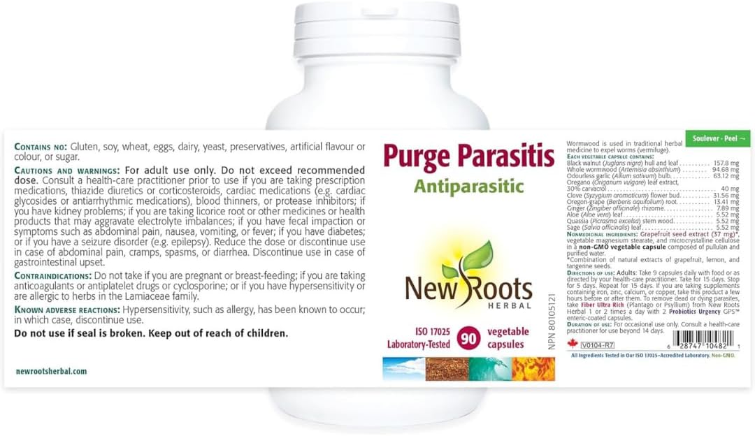 New Roots Herbal | 成人驅寄生蟲膠囊 - 含苦艾、黑胡桃殼的全面寄生蟲清除劑 - 消化和抗寄生蟲支持補充劑(90 粒素食膠囊)