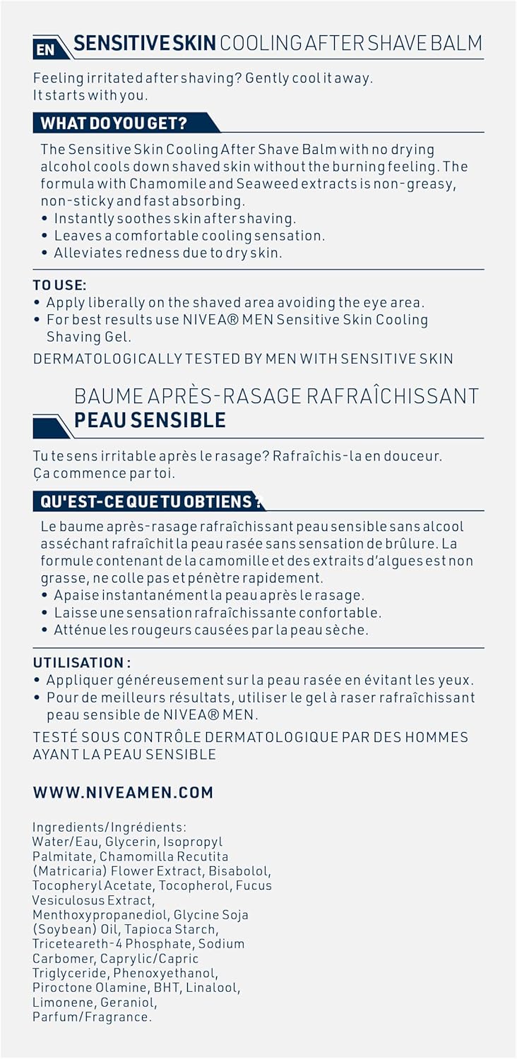 NIVEA 男士敏感肌膚清涼須後膏 (100 毫升) 和 NIVEA 男士活力潤唇膏 (2 X 4.8 克) | 無酒精須後水 + 唇部護理套裝