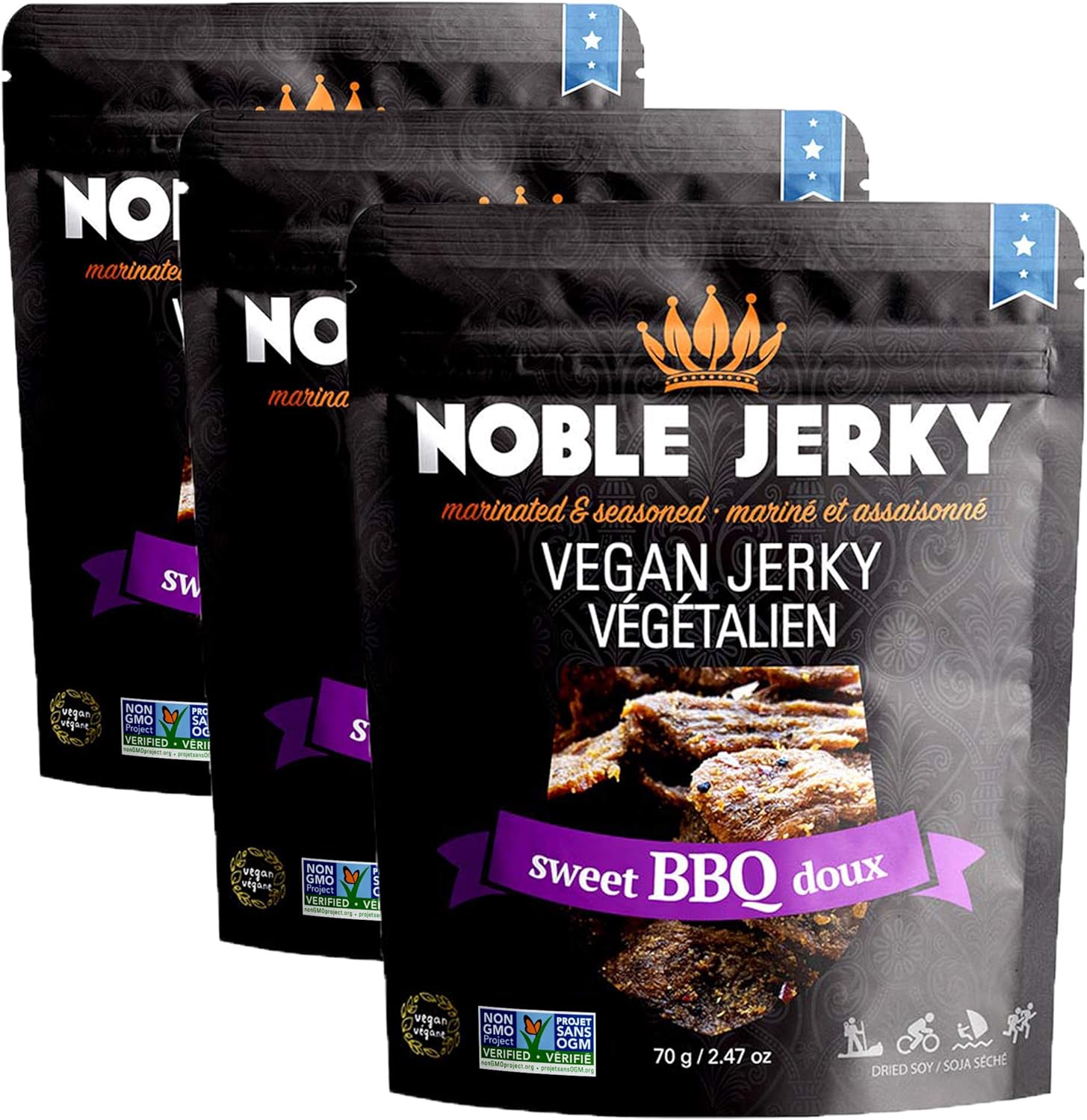 Noble Jerky 素食肉乾燒烤口味 - 14克植物蛋白,非基因,無人工添加劑,高蛋白零食,3包(70克/袋)