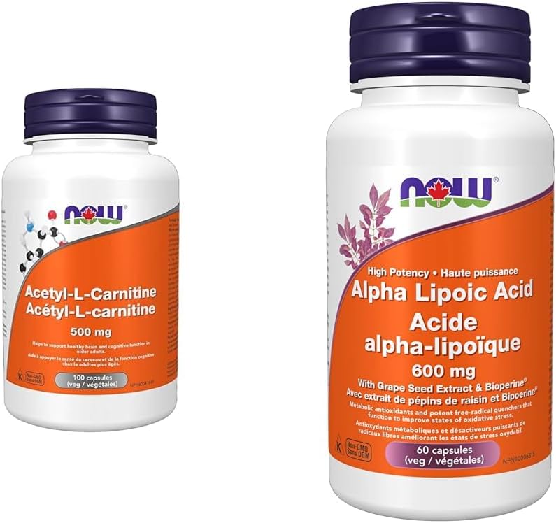 NOW - 乙醯左旋肉鹼 500 毫克 100 粒素食膠囊和α-硫辛酸 600 毫克 60 粒素食膠囊