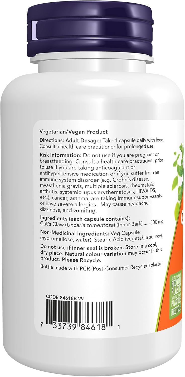 NOW Supplements, 貓爪藤 500 毫克,非基因改造項目認證,草本補充劑,100 粒素食膠囊