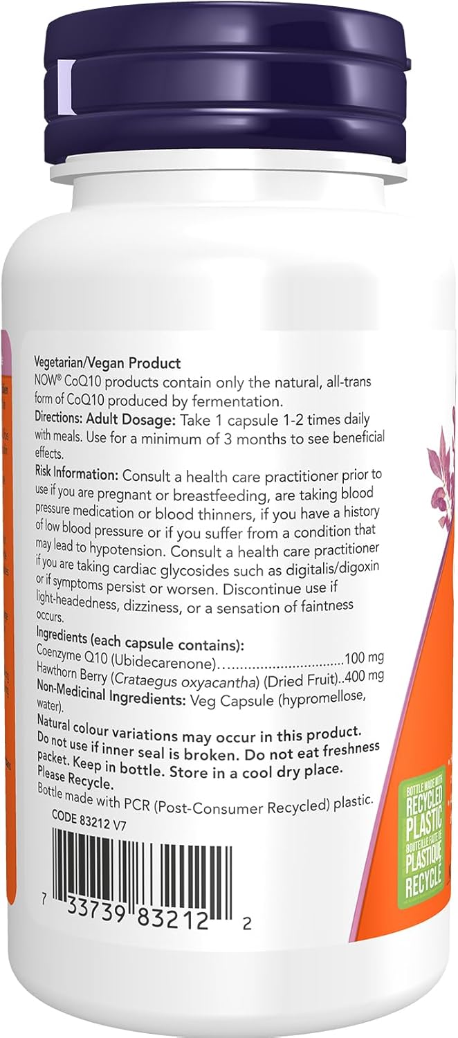 輔酶Q10是一種類維生素化合物,也稱為泛素(ubiqui)。它是細胞的重要組成部分,對粒線體的能量產生至關重要。多年的研究表明,輔酶Q10除了在細胞能量產生中發揮重要作用外,還能維持健康的心血管和免疫系統功能。這種中等效力的成分減少了維持心血管健康所需的每日用藥數量。山楂果因其促進血液循環和控制其他心血管風險因素的作用而聞名。我們的NOW天然有機補充劑是確保您和您的家人獲得必需維生素、礦物質和營養素,以保持最佳日常健康狀態的有效方法。自2000年以來,NOW品牌一直致力於支持加拿大人,其使命是提供能夠幫助人們過更健康生活的產品。加拿大70%的NOW產品在安大略省圭爾夫市生產或包裝,並僱用了來自全國各地的數百名加拿大員工。 NOW每月進行31,000次品質檢測,以確保您以最優惠的價格獲得最高品質的補充劑。我們的承諾-標籤上所寫的內容與瓶子裡的內容完全一致。