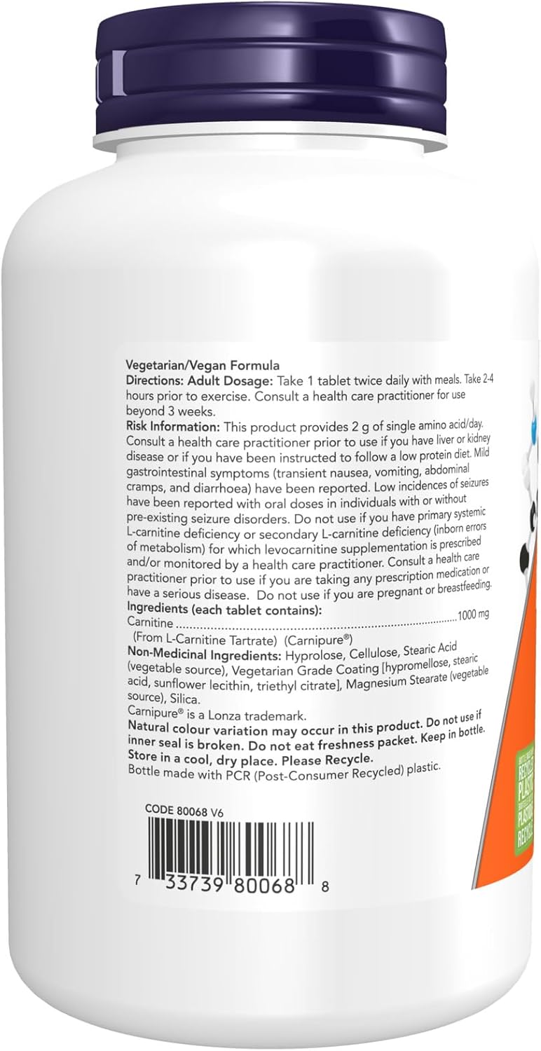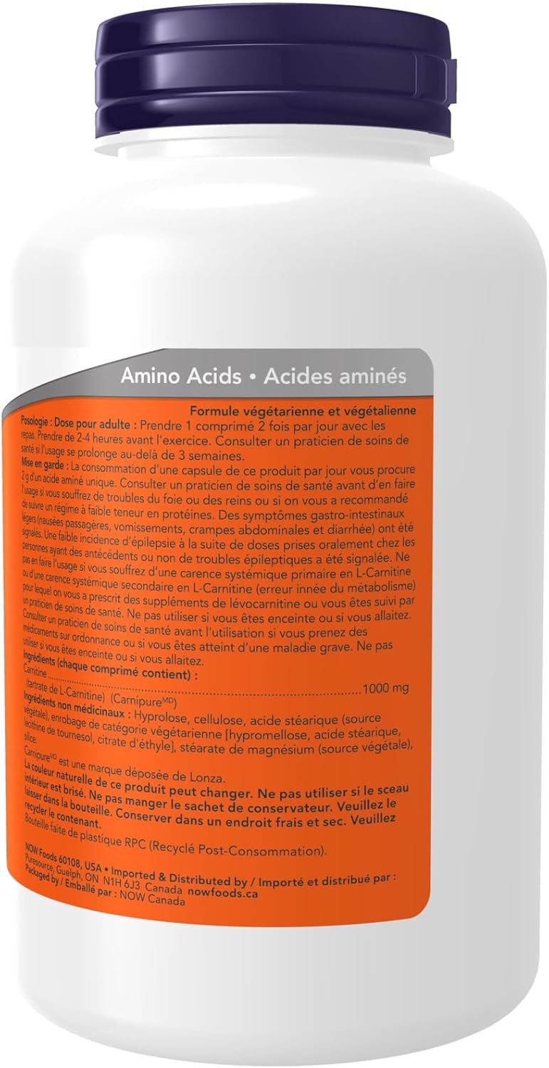 NOW Supplements,雙倍強度左旋肉鹼 1,000 毫克,最純淨形式,胺基酸,健身支持,100 片