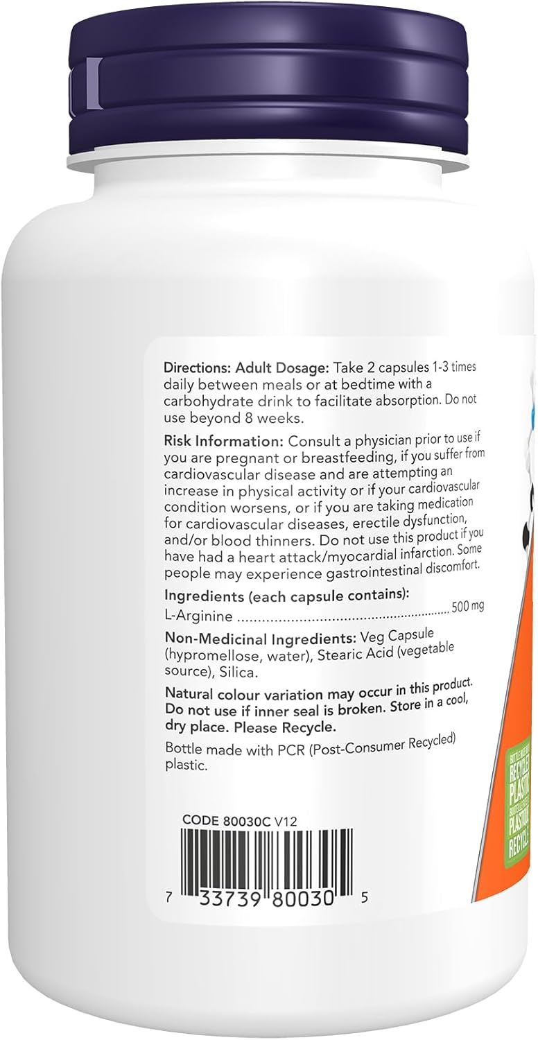NOW Supplements, L-精胺酸 500 毫克,一氧化氮前體,胺基酸,100 粒素食膠囊