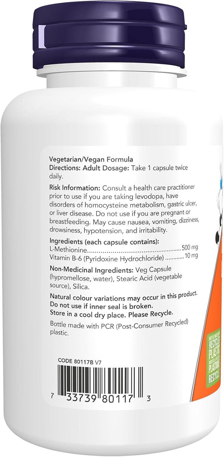 NOW Supplements,L-蛋胺酸 500 毫克,含維生素 B-6,支持排毒,胺基酸,100 粒素食膠囊