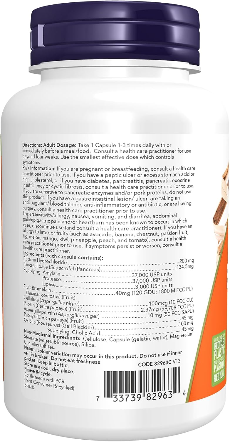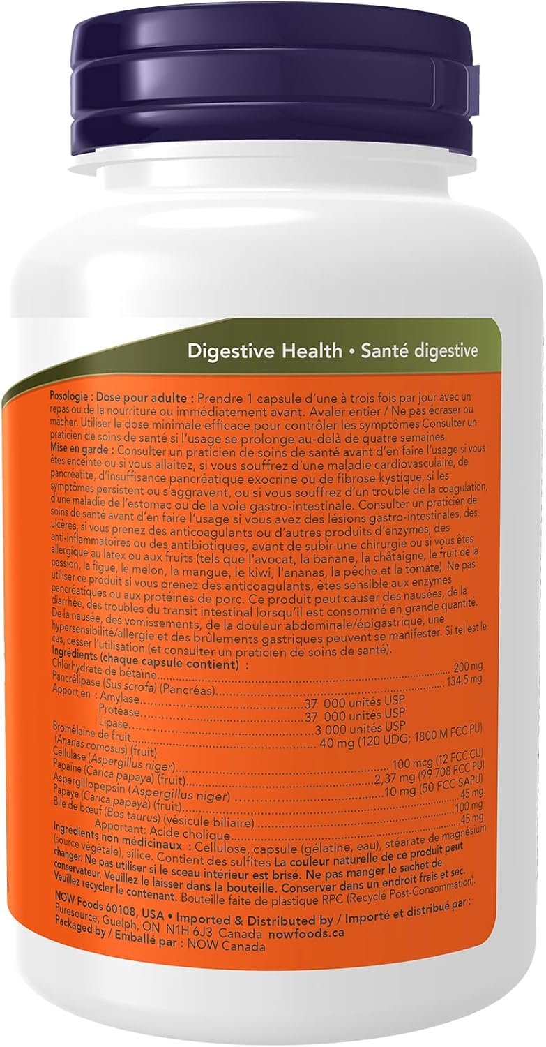 NOW超級酵素是支持健康消化的綜合酵素混合物。超級酵素由鳳梨蛋白酶、甜菜鹼鹽酸鹽、牛膽汁、胰酶和木瓜蛋白酶配製而成,有助於優化蛋白質、脂肪和碳水化合物的分解。甜菜鹼鹽酸鹽可以在消化過程的早期作用於蛋白質,有助於緩解胃脹、灼熱和胃酸倒流。牛膽汁可以促進脂肪分解,幫助吸收重要的脂溶性維生素和對整體健康至關重要的關鍵必需脂肪。膽囊或胰臟功能不全的人可能會發現這種配方因含有這種成分而有益。膠囊輸送確保快速起效。我們的NOW天然有機補充劑是確保您和您的親人獲得必需維生素、礦物質和營養素以保持日常最佳健康狀態的有效方法。自2000年以來,NOW品牌一直致力於支持加拿大人,其使命是提供能讓人們過上更健康生活的產品。加拿大 70% 的 NOW 產品在安大略省圭爾夫市生產或包裝,數百名加拿大員工遍布全國各地。 NOW 每月進行 31,000 次品質檢測,確保您以最優惠的價格獲得最高品質的補充劑。我們承諾:標籤上的內容與瓶中內容完全一致。