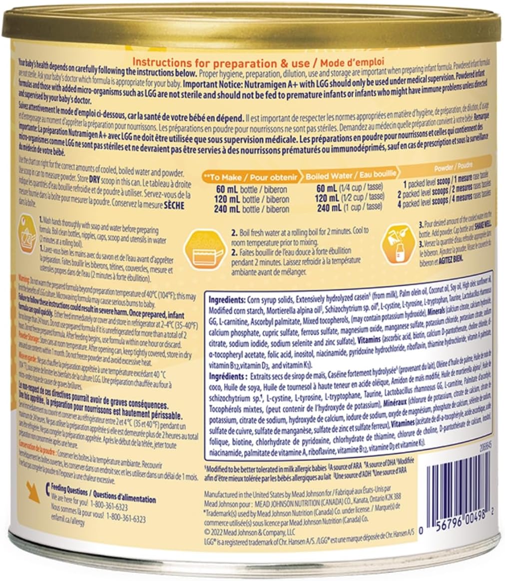 Nutramigen® A+® with LGG® 是一種低過敏性、高度水解的嬰兒配方奶粉,為患有牛奶蛋白過敏的嬰兒(包括患有腸絞痛*的嬰兒)提供特殊餵養。