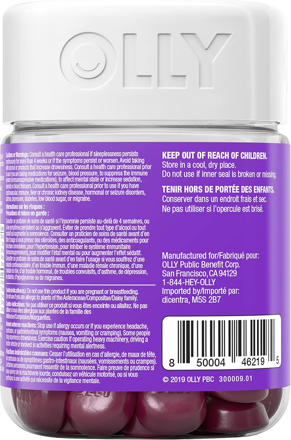 OLLY 睡眠軟糖補充劑有助於促進健康的睡眠週期 Blackberry Zen 含褪黑激素、L-茶氨酸和植物成分 25 天供應量 50 粒軟糖