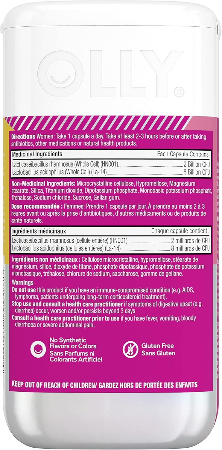 OLLY 補充劑膠囊 無麩質多菌株女性益生菌補充劑 Happy HOO-HA 支持陰道健康 25 粒膠囊