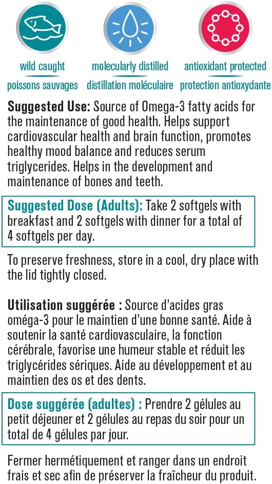 OmegEssential + 維生素 D 成人魚油補充劑 - 1,000 EPA + 550 DHA,120 粒軟膠囊 | 全天然、冷水、野生捕撈