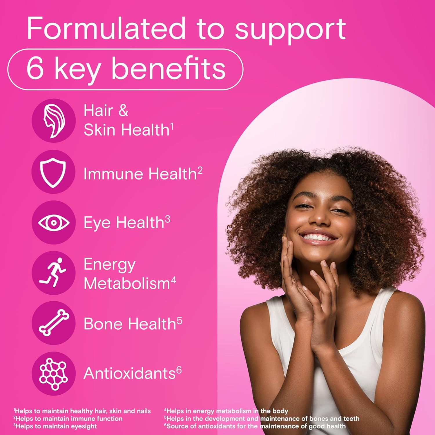 One A Day Multi+ 頭髮、皮膚和指甲複合維生素軟糖 - 每日補充維生素,支持健康的頭髮、皮膚和指甲,含生物素、維生素 A、C、E 和鋅,男女適用,120 粒軟糖