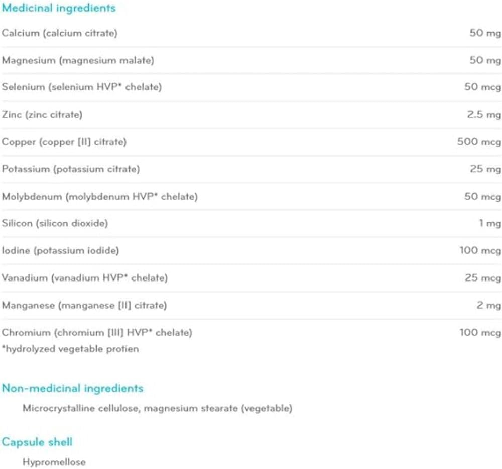 人體需要各種礦物質才能保持最佳健康狀態,但任何礦物質攝入過量且不均衡都會阻礙其他礦物質的吸收。服用鈣或鎂等治療劑量礦物質的人也可以考慮補充微量礦物質。礦物質水平不足會導致免疫功能受損、骨骼脆弱、皮膚健康狀況不佳以及心血管和關節疾病。充足的微量礦物質水平對皮膚、肌肉、軟骨、牙齒和骨骼的發育和修復、免疫功能、荷爾蒙調節以及控制發炎都至關重要。