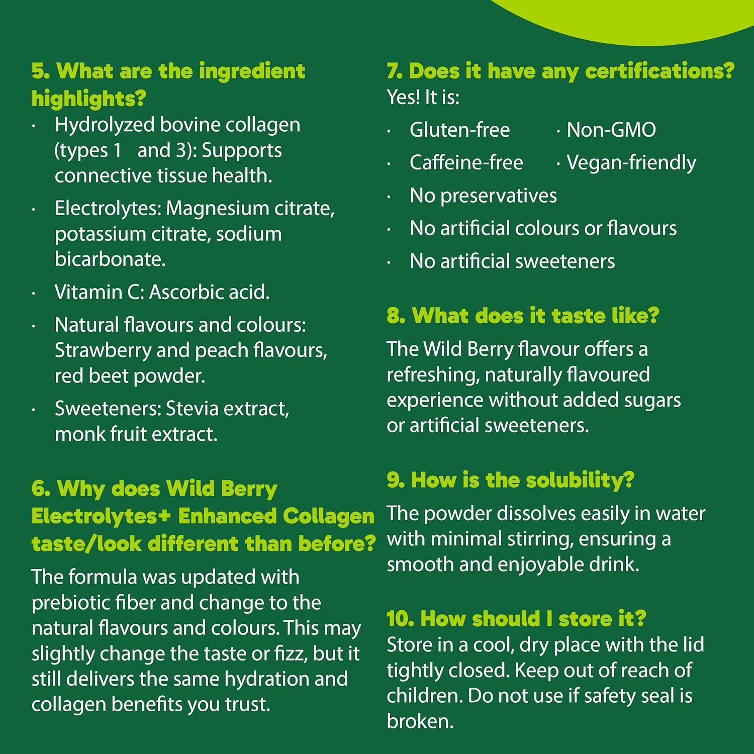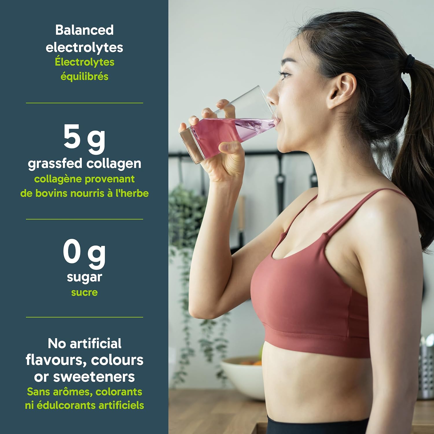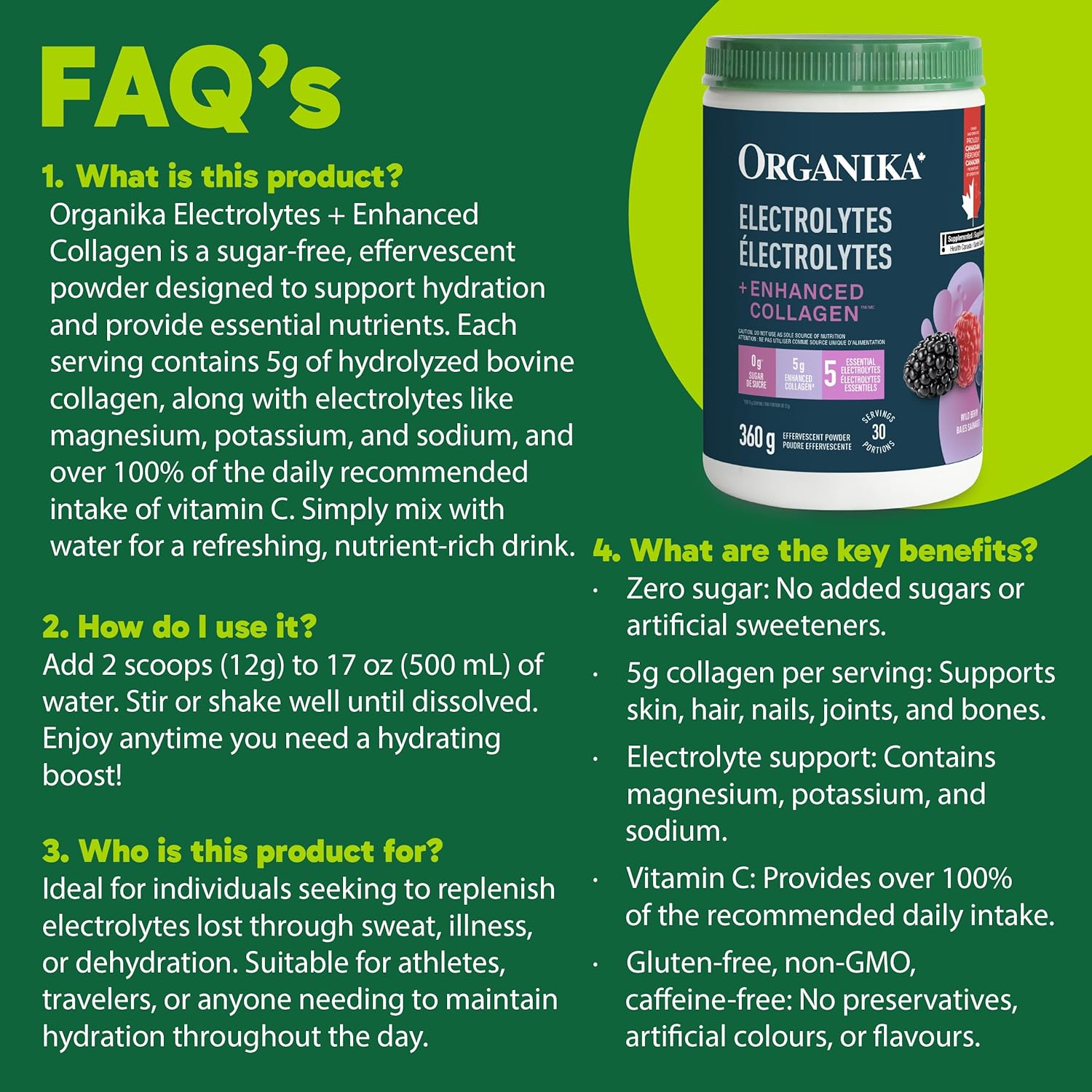 Organika 加拿大製造電解質 + 增強膠原蛋白 - 野莓口味 - 無糖補水 | 5 克蛋白質 + 100% 每日所需維生素 C | 360 克,30 份
