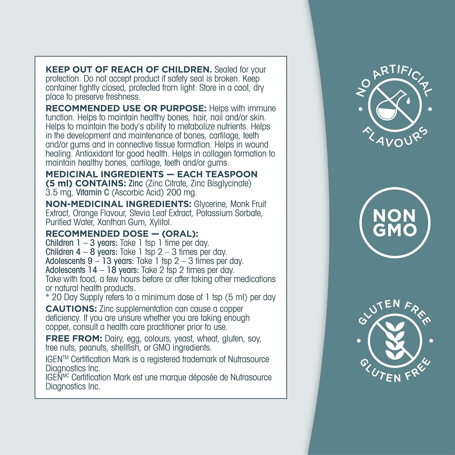 Organika 加拿大製造兒童液體鋅,含維生素 C,甜橙味,免疫功能支持,100 毫升