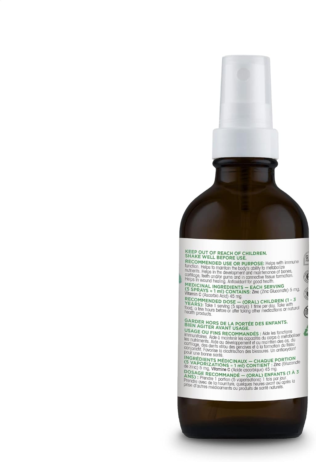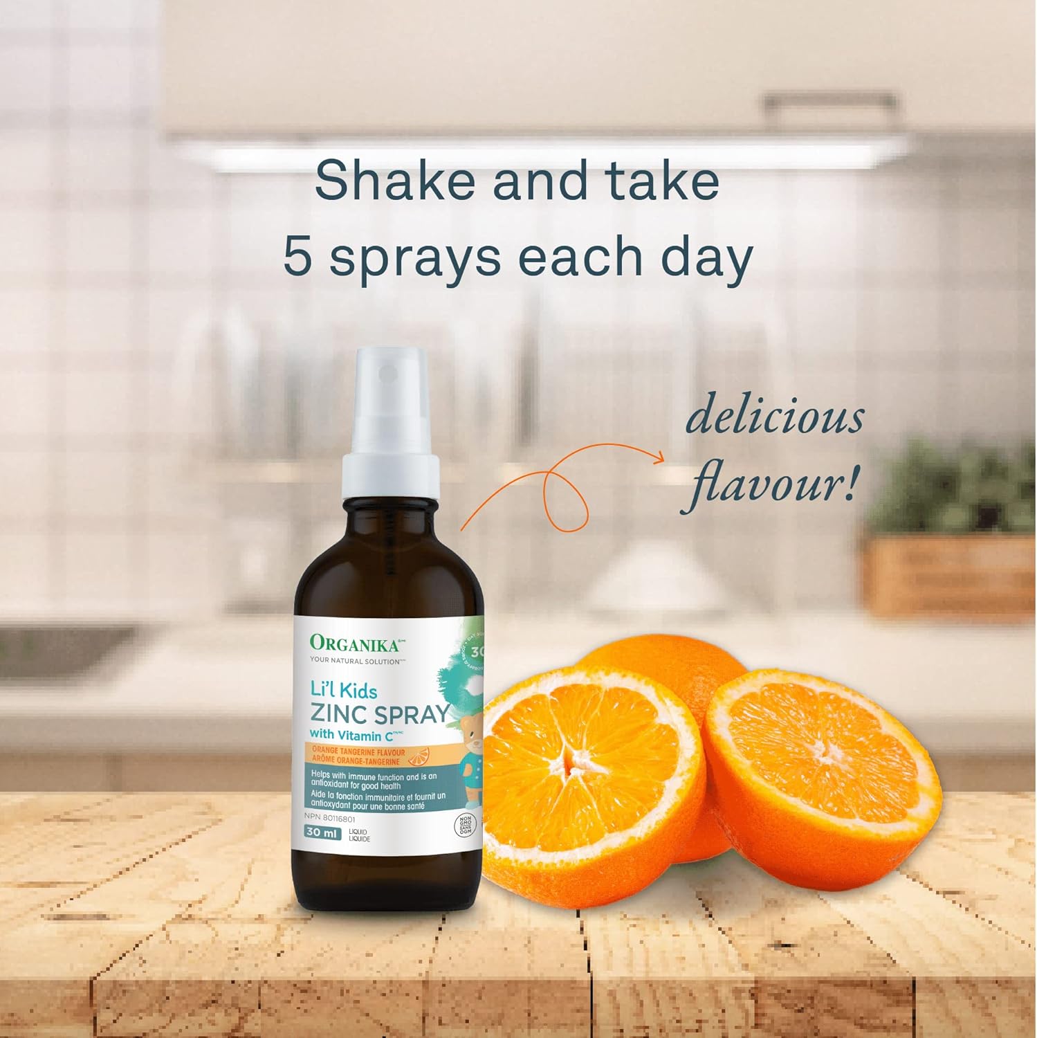 Organika 加拿大製造兒童鋅噴霧,含維生素 C,橙子橘子口味,為您的孩子提供免疫支持,簡易噴霧形式,30 毫升