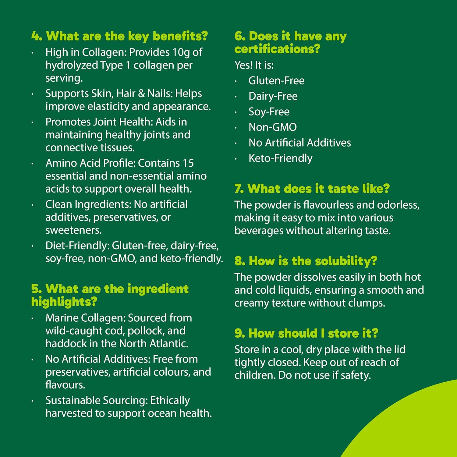 Organika 海洋膠原蛋白採用 100% 純正單成分水解海洋膠原蛋白製成。對於有飲食限制的人士來說,它是牛源膠原蛋白的絕佳替代品。它含有 15 種氨基酸,可增強您的整體健康,並可輕鬆與您喜愛的食物和飲料搭配。我們的海洋膠原蛋白可持續地來自淡水鱈魚,不含任何抗生素和添加荷爾蒙。