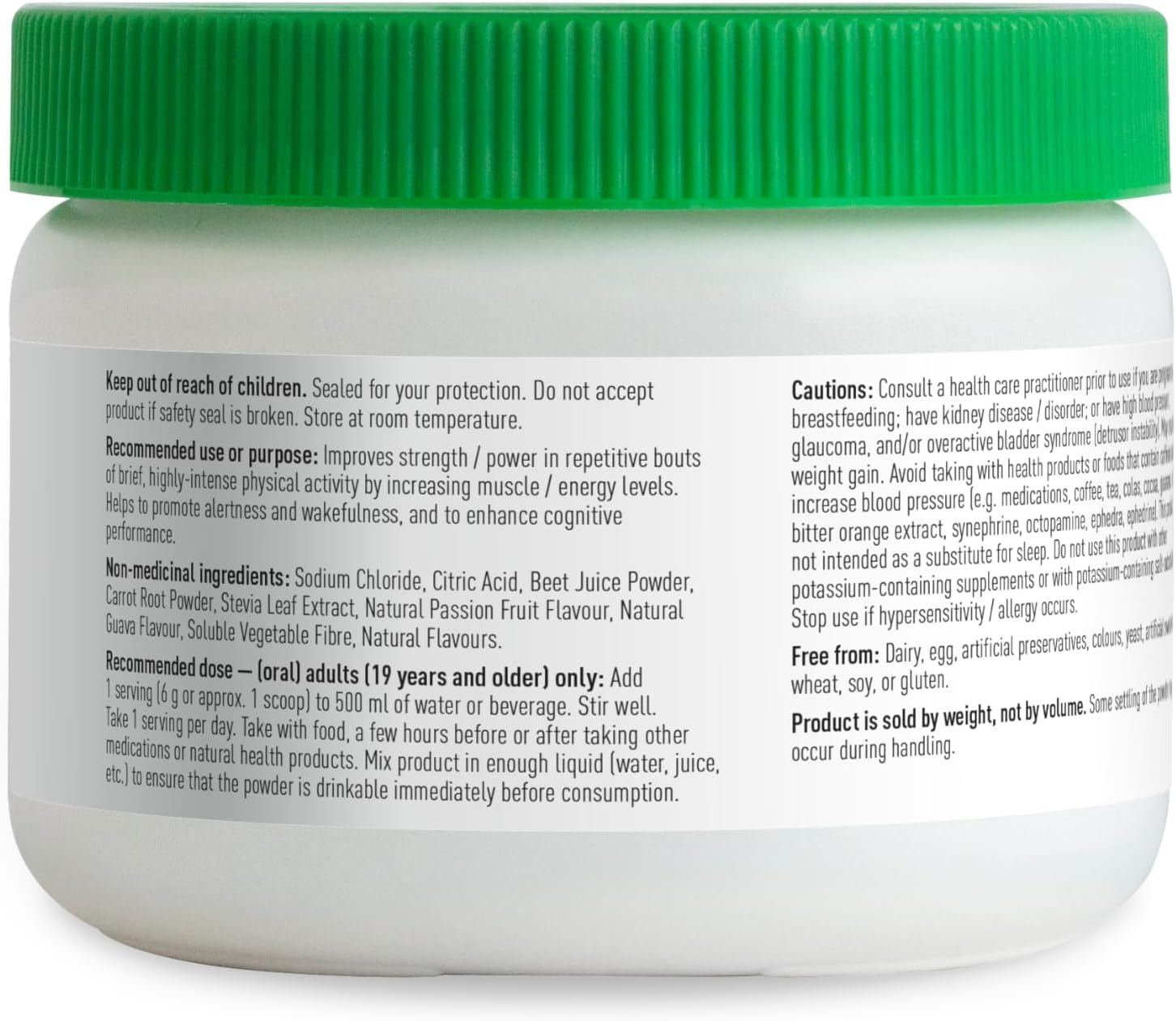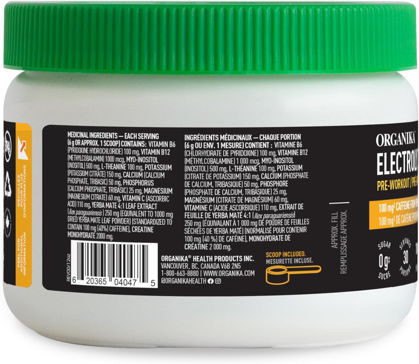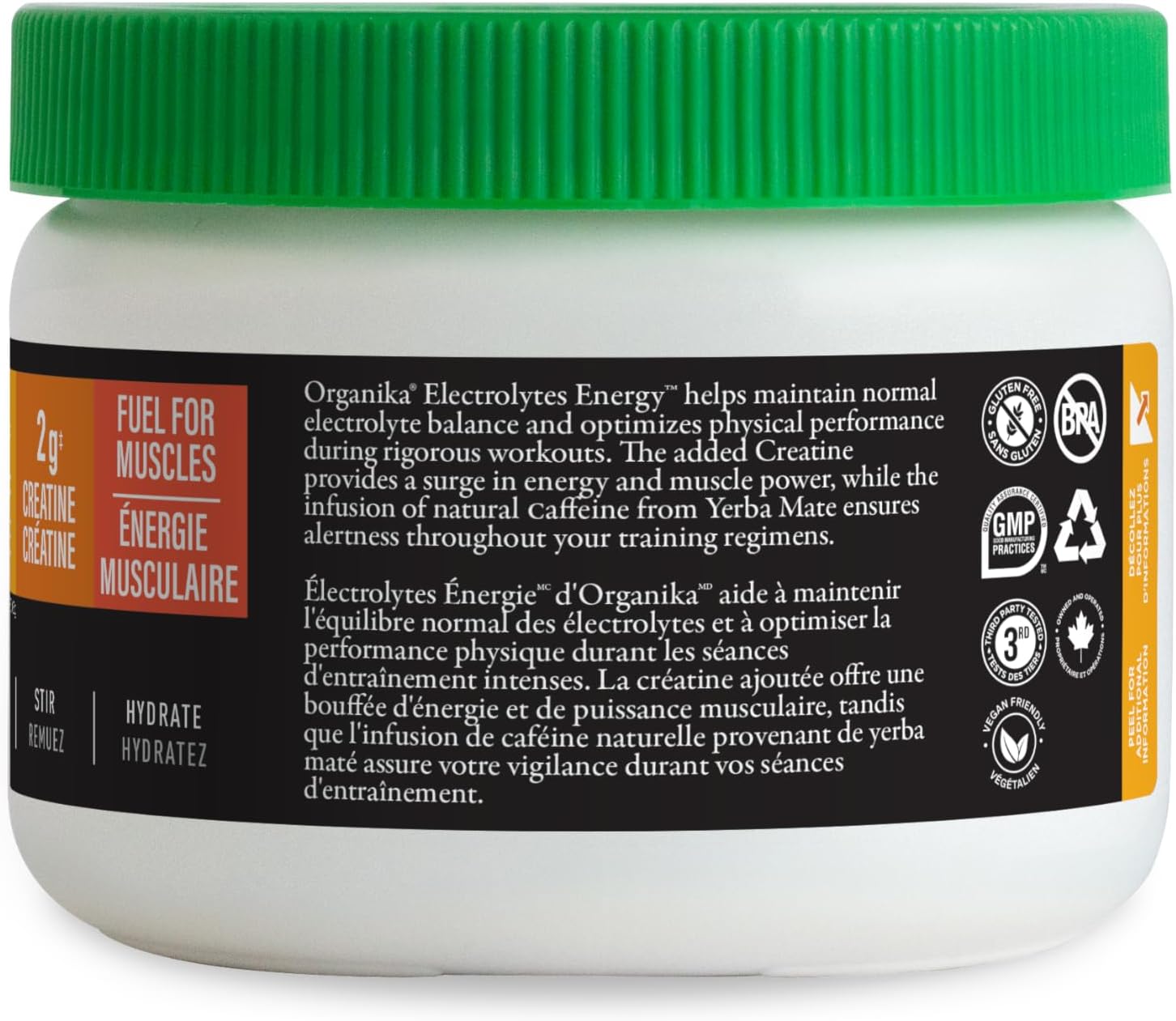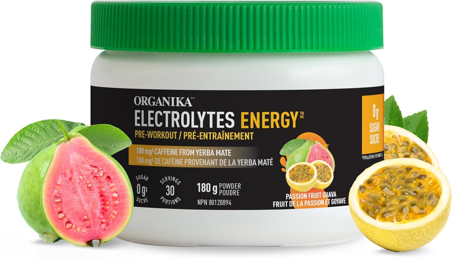 Organika 電解質能量 - 運動前,2 克肌酸,天然馬黛茶咖啡因,肌醇 - 百香果番石榴味 - 180 克