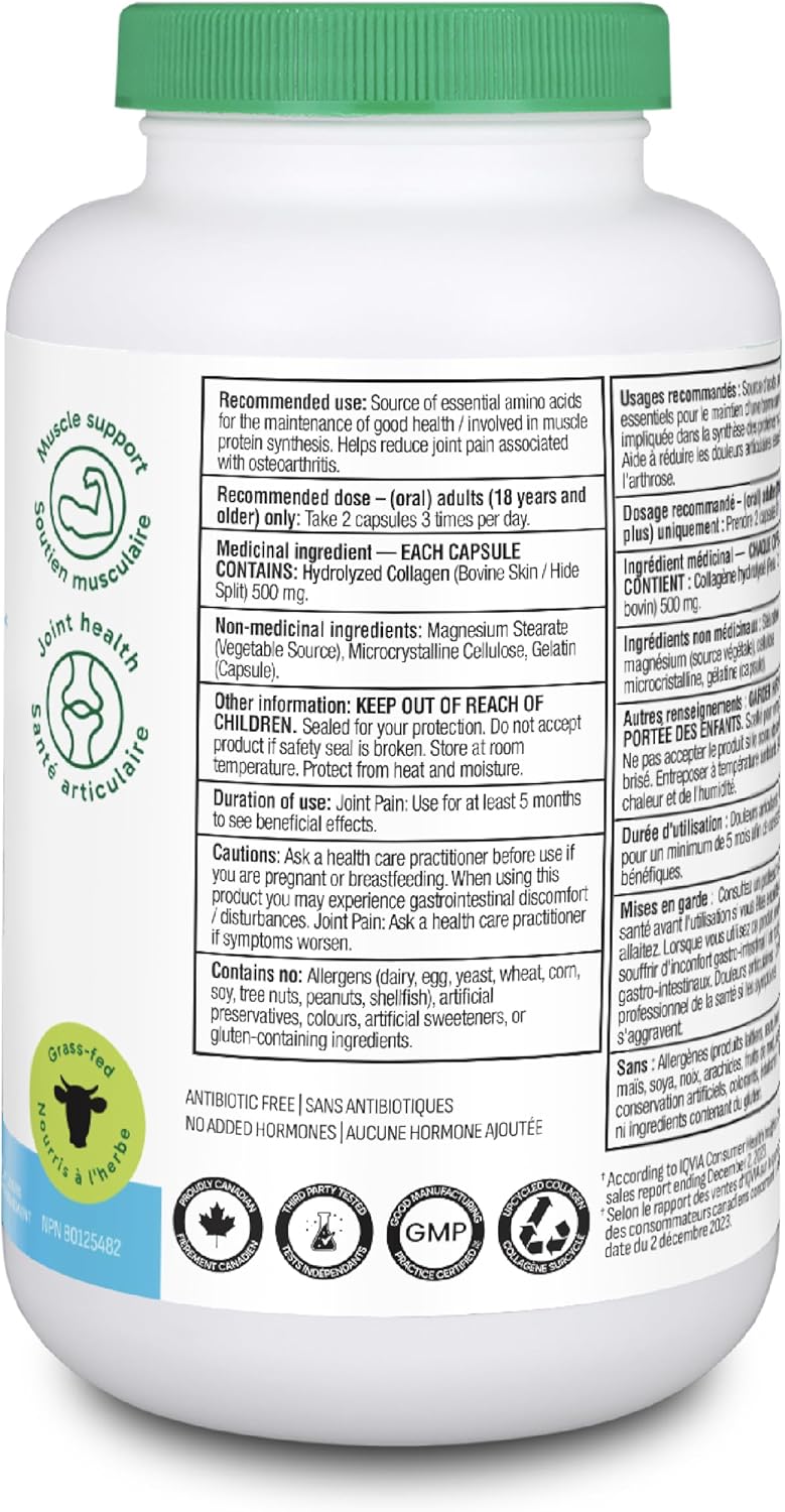 Organika 增強型膠原蛋白膠囊 - 有益於頭髮、皮膚、指甲和關節健康 - 水解,吸收更佳 - 草飼,非基因改造 - 240 粒膠囊
