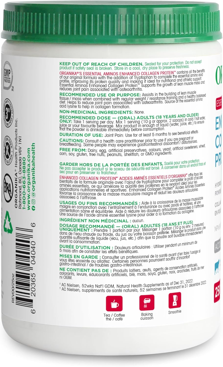 必需胺基酸增強型膠原蛋白配方與您喜愛的膠原蛋白配方相同,並添加了色氨酸,以完善必需氨基酸組合。進一步支持瘦肌肉的成長,同時持續緩解關節疼痛,滋養肌膚,改善頭髮和指甲。