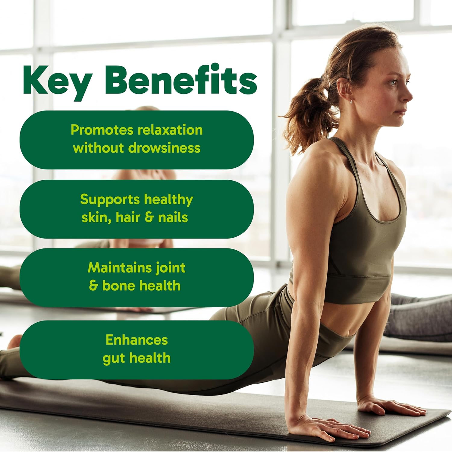 使用 Organika 無味水解增強型膠原蛋白舒緩精華,恢復、放鬆並重建膠原蛋白。肽是從膠原蛋白中提取的天然短鏈氨基酸。這些天然勝肽具有高度生物利用度、易消化和可溶性。 L-茶氨酸有助於緩解壓力,透過誘導放鬆效果而不產生困倦,並降低壓力感。 L-茶氨酸還能增加 α 腦波,有助於鎮靜焦慮的大腦,並略微提高注意力持續時間。雙甘胺酸鎂可以透過幫助改善睡眠、血壓、鎮靜大腦以及改善長期和短期記憶,在細胞層面影響壓力反應。它還能調節神經系統,影響神經傳導物質的釋放,幫助應對焦慮和壓力。