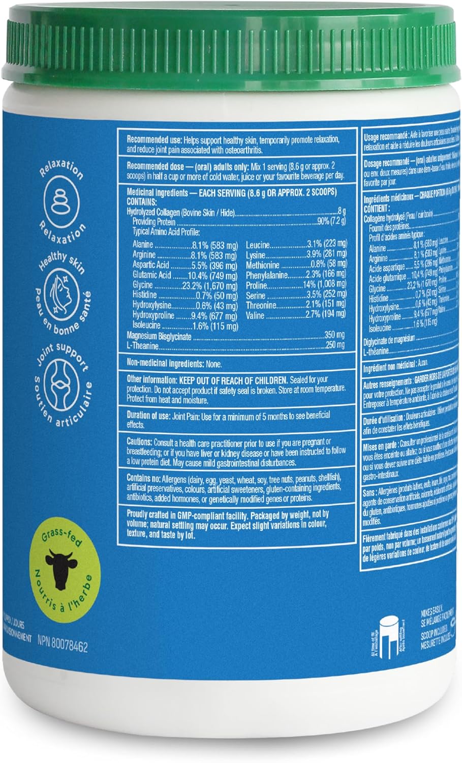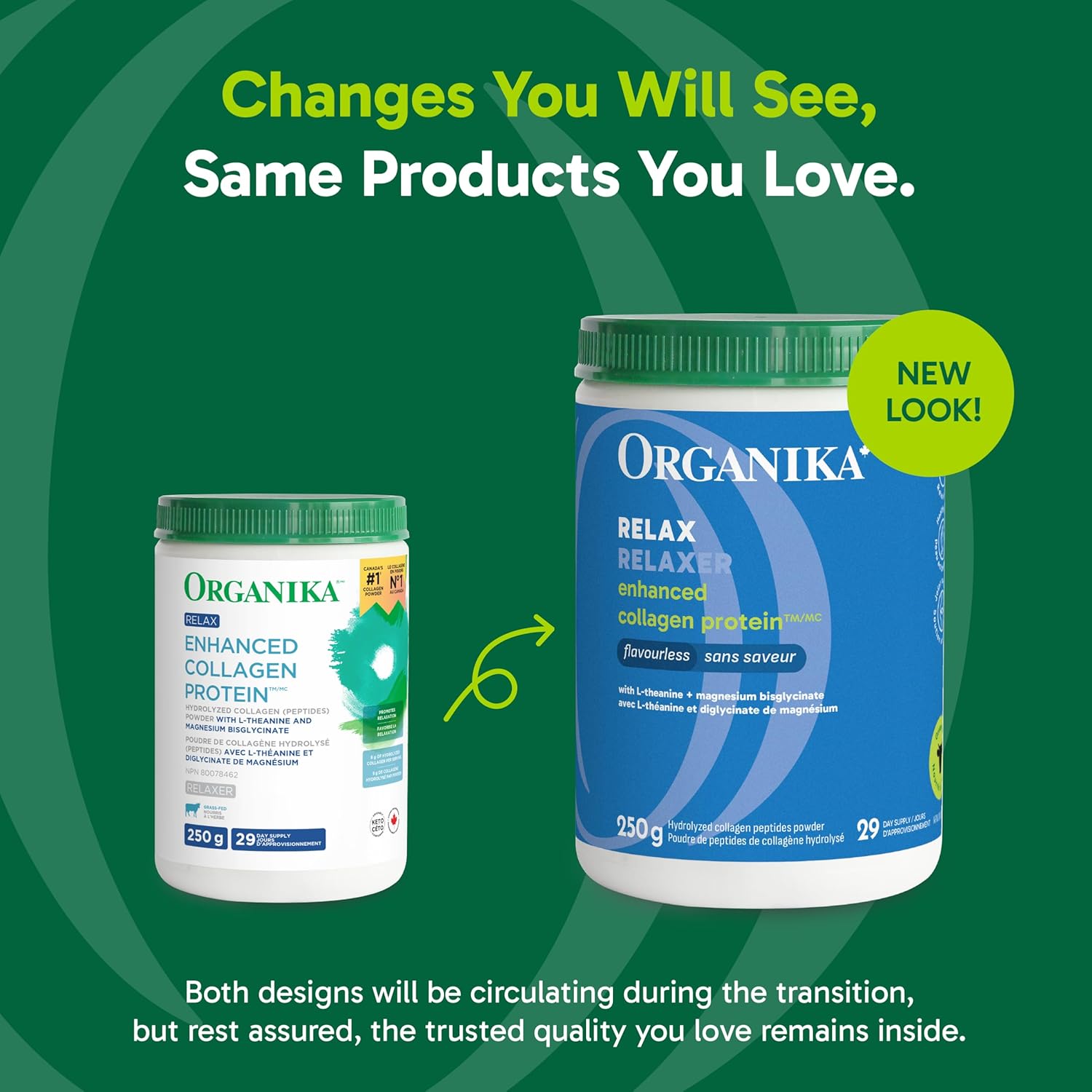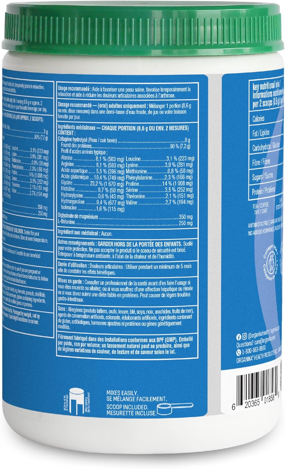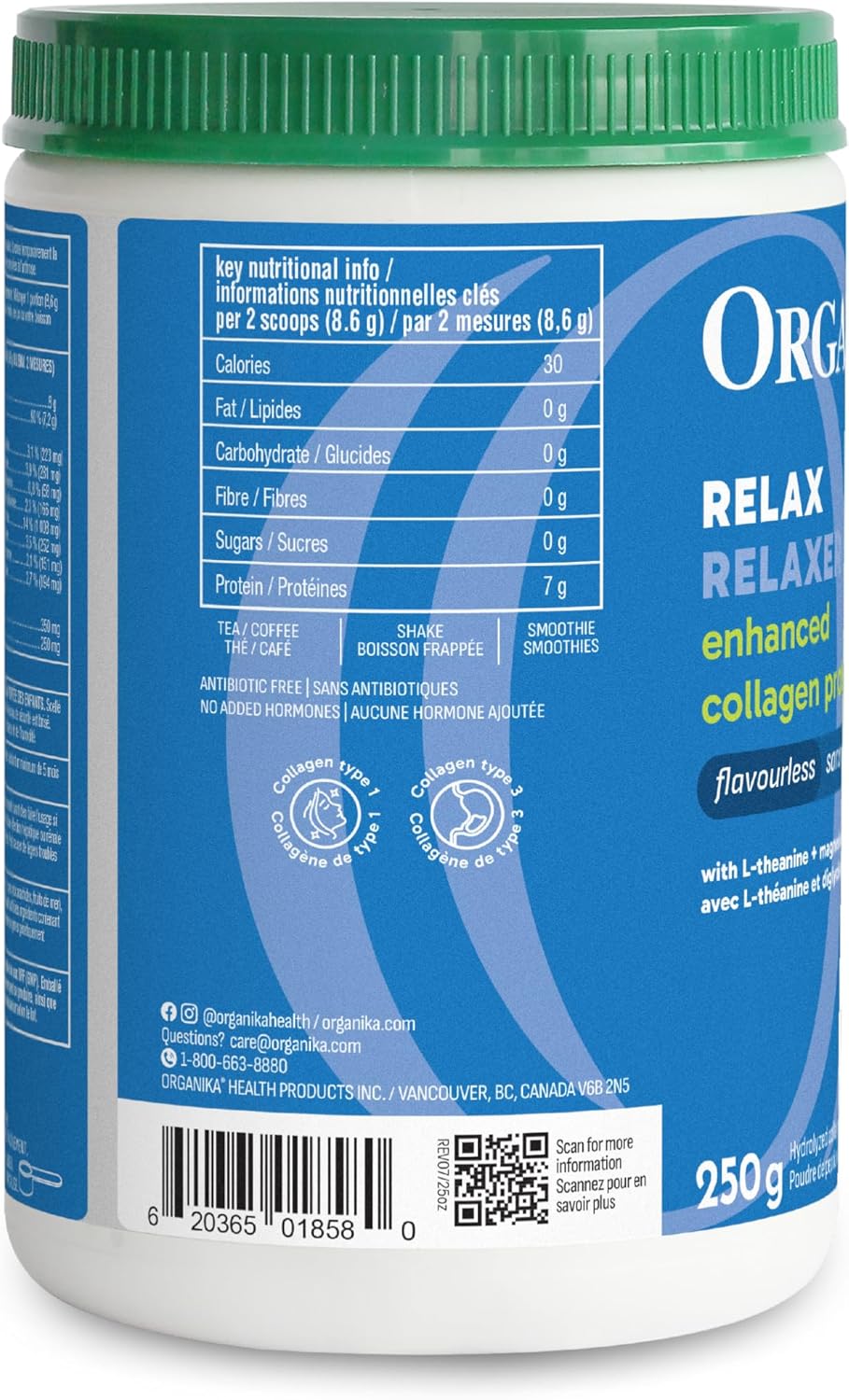 Organika 增強型膠原蛋白放鬆粉,含甘氨酸鎂和 L-茶氨酸 - 具有鎮靜作用,有助於睡眠,全天保持能量水平 - 250 克