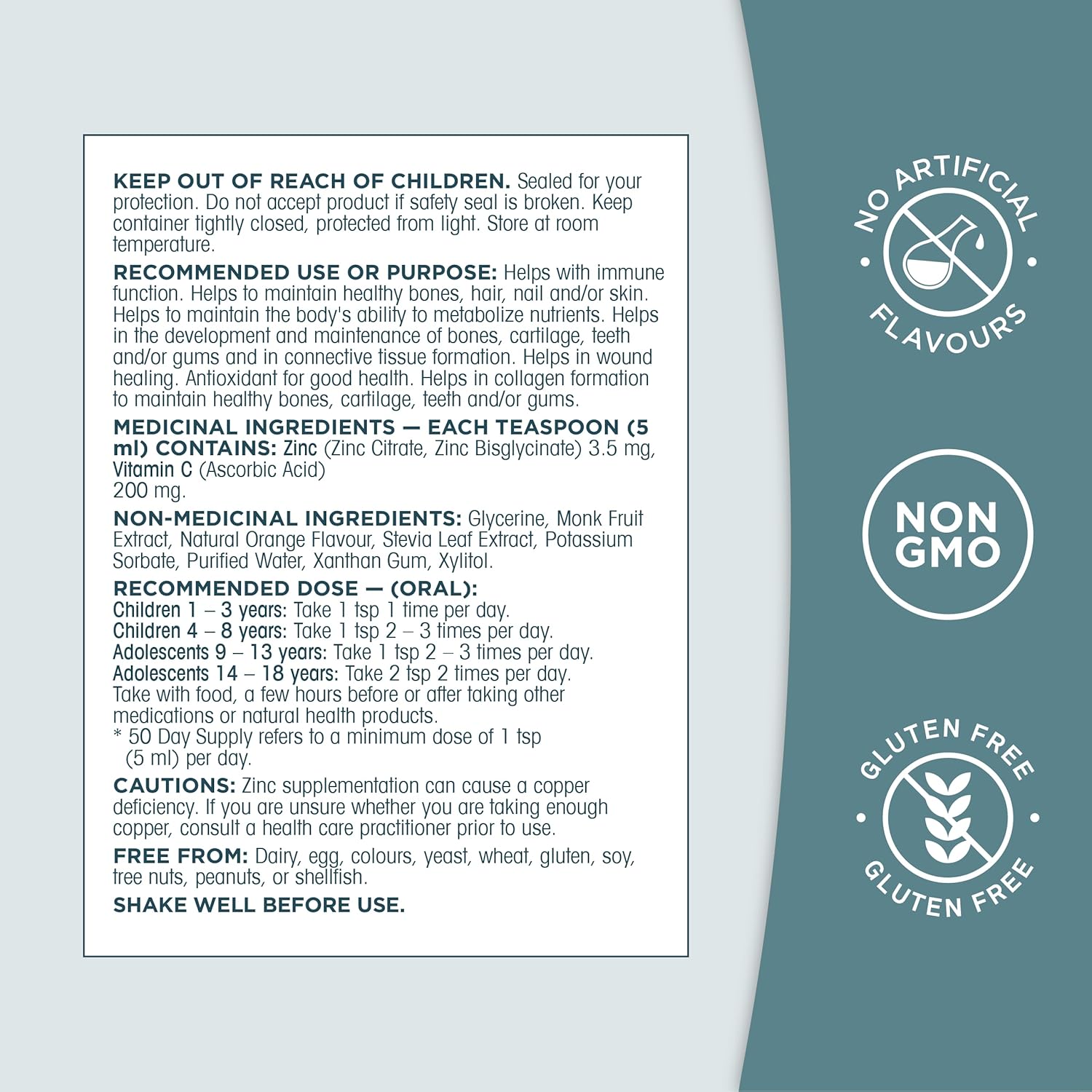 Organika 兒童液體鋅(含維生素 C)- 甜橙味 - 增強免疫功能和抗氧化 250 毫升