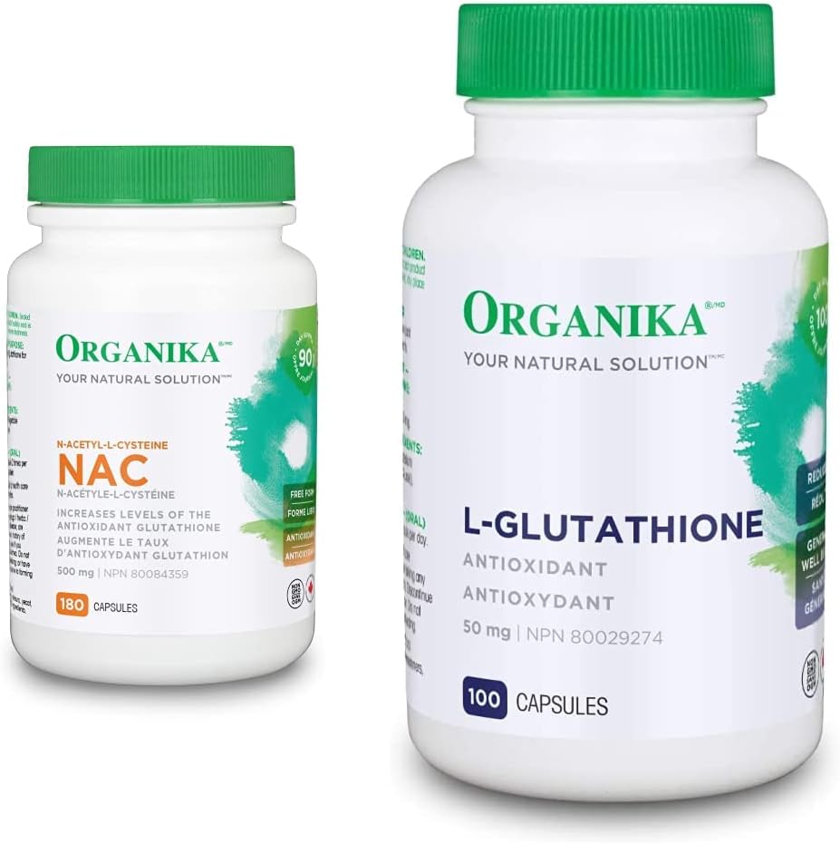 Organika NAC(N-乙醯-L-半胱氨酸)500毫克和L-穀胱甘肽(還原型)| 支持抗氧化和排毒水平,支持免疫系統和肝臟