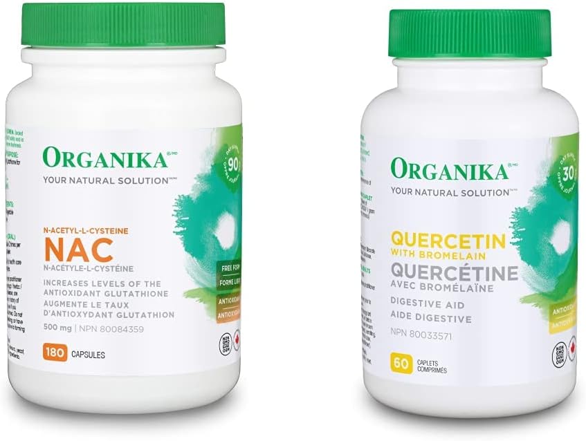 Organika NAC(N-乙醯-L-半胱氨酸)500毫克+ Organika 槲皮素與鳳梨蛋白酶 | 免疫和肝臟支持套裝