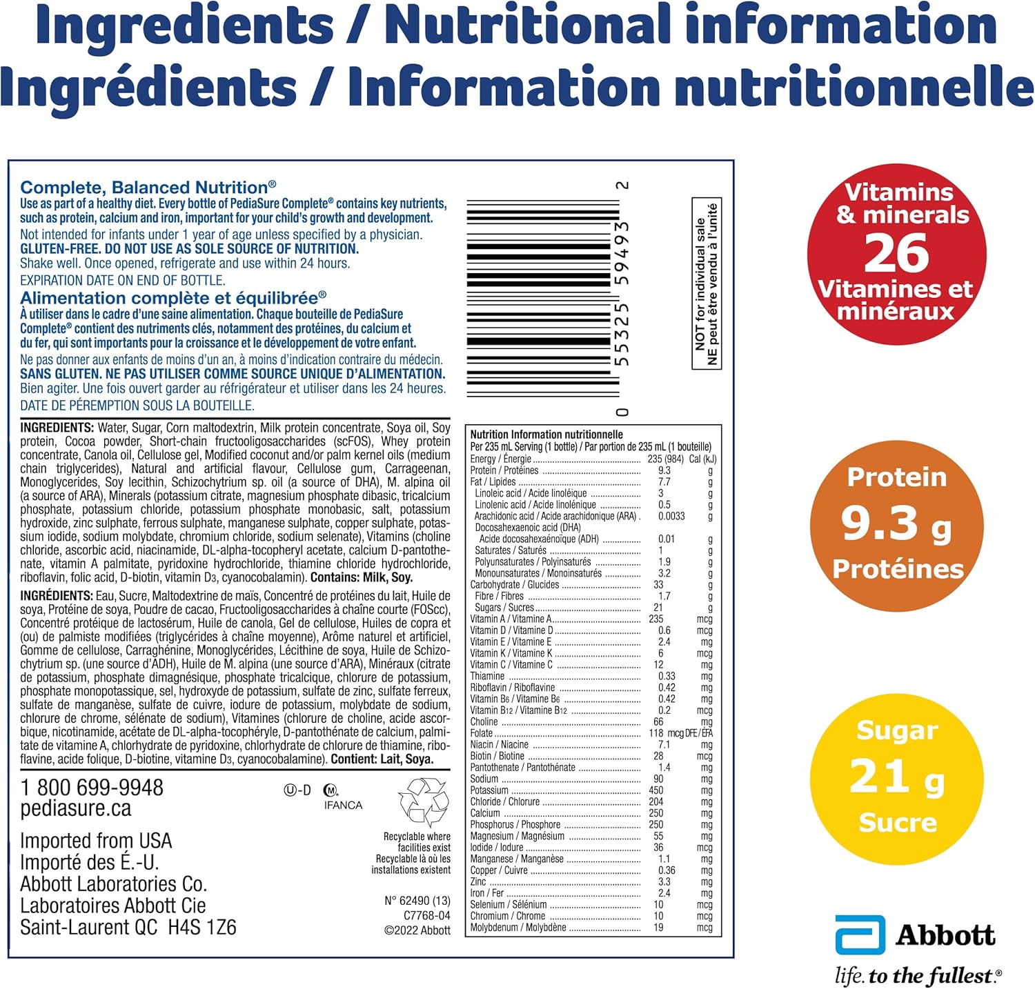 PediaSure Complete,營養補充劑,兒童營養奶昔,可作為早餐飲品,香草味,4 x 235 毫升瓶裝
