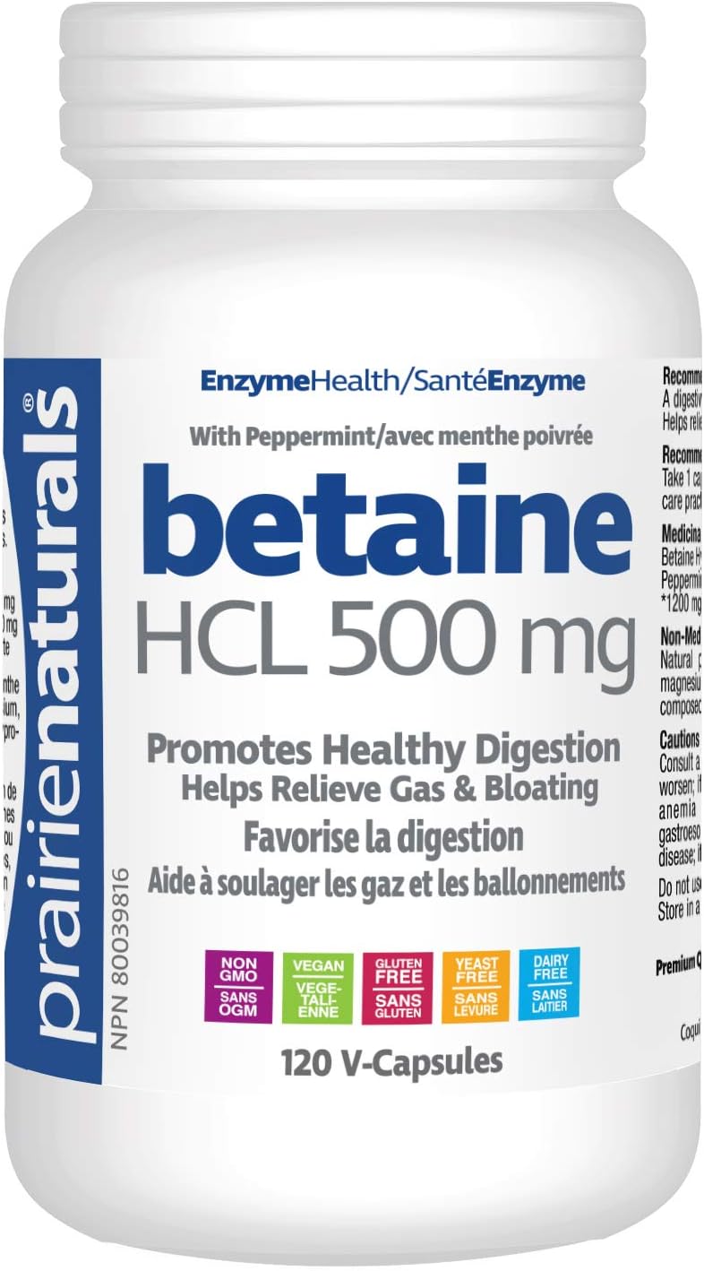 Prairie Naturals 甜菜鹼鹽酸鹽 500 毫克素食膠囊 - 120 粒 & Enzyme Force - 全譜植物酶,含 FibraZyme 素食膠囊 - 60 粒