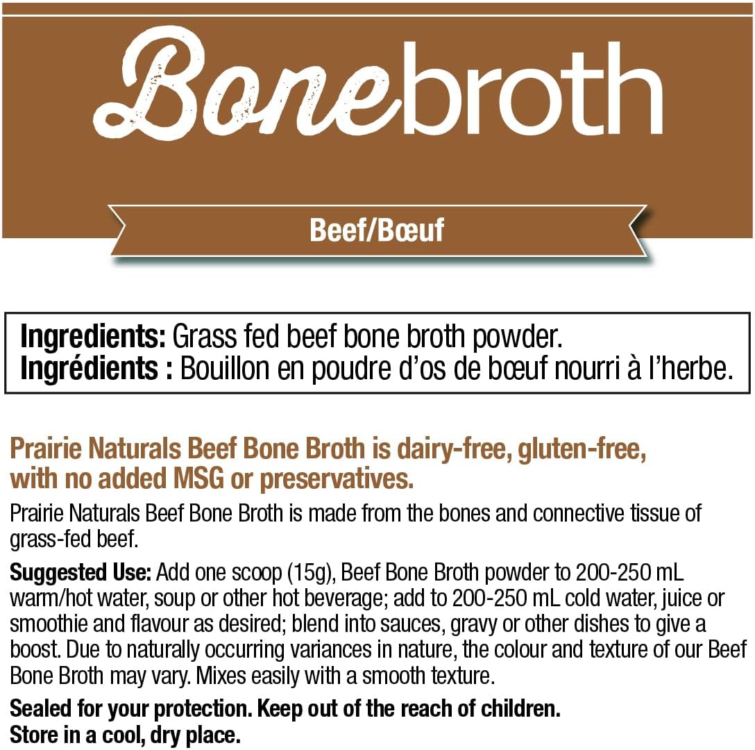 Prairie Naturals 推出 100% 骨湯蛋白粉。我們 100% 牛骨湯蛋白粉所使用的骨頭皆來自草飼、草飼育肥的牛隻。