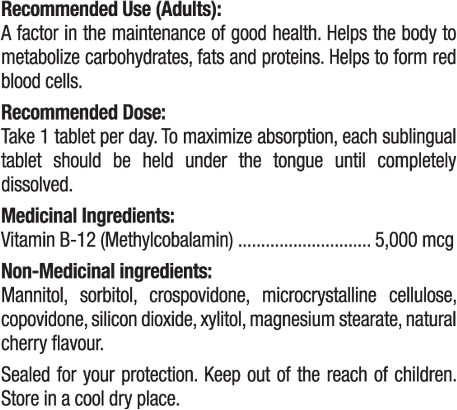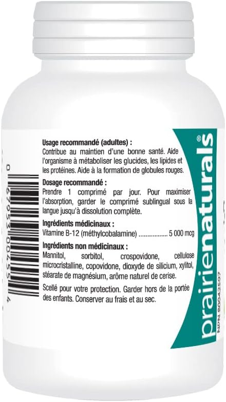 Prairie Naturals 舌下維生素 B12 甲鈷胺 5000mcg 幫助身體代謝蛋白質,形成紅血球,並預防維生素 B12 缺乏症 - 90 粒