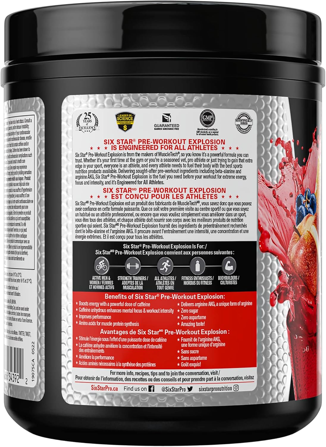 運動前,六星爆發性運動前粉,男女適用,含一水肌酸和β-丙氨酸,可提供能量、專注力和強度,能量粉,水果混合味(30 份)釋放您最好的鍛鍊效果強健的體魄是高強度、專注鍛鍊的結果,要達到這一點,您需要高能量水平來為有效的鍛鍊做好準備。六星爆發性運動前粉精確添加了精氨酸 AKG、β-丙氨酸、肌酸和咖啡因,可激發最佳表現。 β-丙氨酸是一種眾所周知的鍛鍊前成分,可提高肌肉中的肌肽水平,從而緩衝乳酸,讓您訓練更長時間。精氨酸是一種氨基酸,也是一種很好的血管擴張劑,這意味著它可以改善您的血液流動並使您的泵血更具爆發力。咖啡因刺激您的神經系統,提高能量和警覺性,而肌酸是增加力量的補充成分。極致能量。強大的肌肉泵六星鍛鍊前爆發力來自美國排名第一的健身補劑品牌 Muscletech 的製造商,為您無與倫比的表現奠定了基礎,幫助您突破平台期並測試您的極限。這種優質、美味的粉末由世界領先的研究人員配製而成,可提供令人難以置信的能量提升、增強的精神集中力和令人皮膚撕裂的肌肉泵,讓您體驗從未體驗過的爆發性鍛煉。六星鍛鍊前爆發力的驚人好處:能量補充體驗前所未有的強度。透過科學研究的咖啡因劑量,獲得主宰比賽所需的能量和注意力。鍛鍊感受令人皮膚撕裂的肌肉泵的力量,同時透過關鍵劑量的精氨酸 AKG 和肌酸來鍛鍊您需要的肌肉和力量。表現 主宰您的運動。使用臨床劑量的 β-丙氨酸和牛磺酸來支持肌肉耐力。經臨床驗證的成分可促進肌肉生長 Six Star Pre-Workout Explosion 提供經臨床研究最多的肌酸形式,可增強肌肉塊頭、力量和表現。在一項針對 31 名進行重量訓練的測試對象(隨機分配到 3 個組別中的 1 個)的研究中,服用相同形式肌酸的受試者在短短 10 天內就顯著提高了臥推強度,與基線相比提高了 18.6%(6,658 焦耳 vs. 5,613 焦耳)。 Six Star Pre-Workout Explosion 的劑量精確,兩匙含有 3 克 β-丙氨酸、3 克肌酸和 2.2 克精氨酸 AKG。這款優質的運動前補充品是您提升耐力和增強力量的強大動力來源。強烈的肌肉泵感源自於高級泵感複合物,由牛磺酸、L-瓜氨酸、L-瓜氨酸蘋果酸鹽和L-精氨酸鹽酸鹽等強效成分獨特組合而成。 Six Star Amino Plus Energy,支鏈胺基酸粉和能量,水果混合口味,30份,208克(1包)。 Six Star Aminos + Energy 由 MuscleTech 出品,因此您知道它是一款值得信賴的強效配方。無論您是健身房新手,還是經驗豐富的老手、職業運動員,抑或只是想在運動中提升優勢,每個人都是運動員,而每位運動員都需要使用市面上最好的運動營養產品來補充能量。