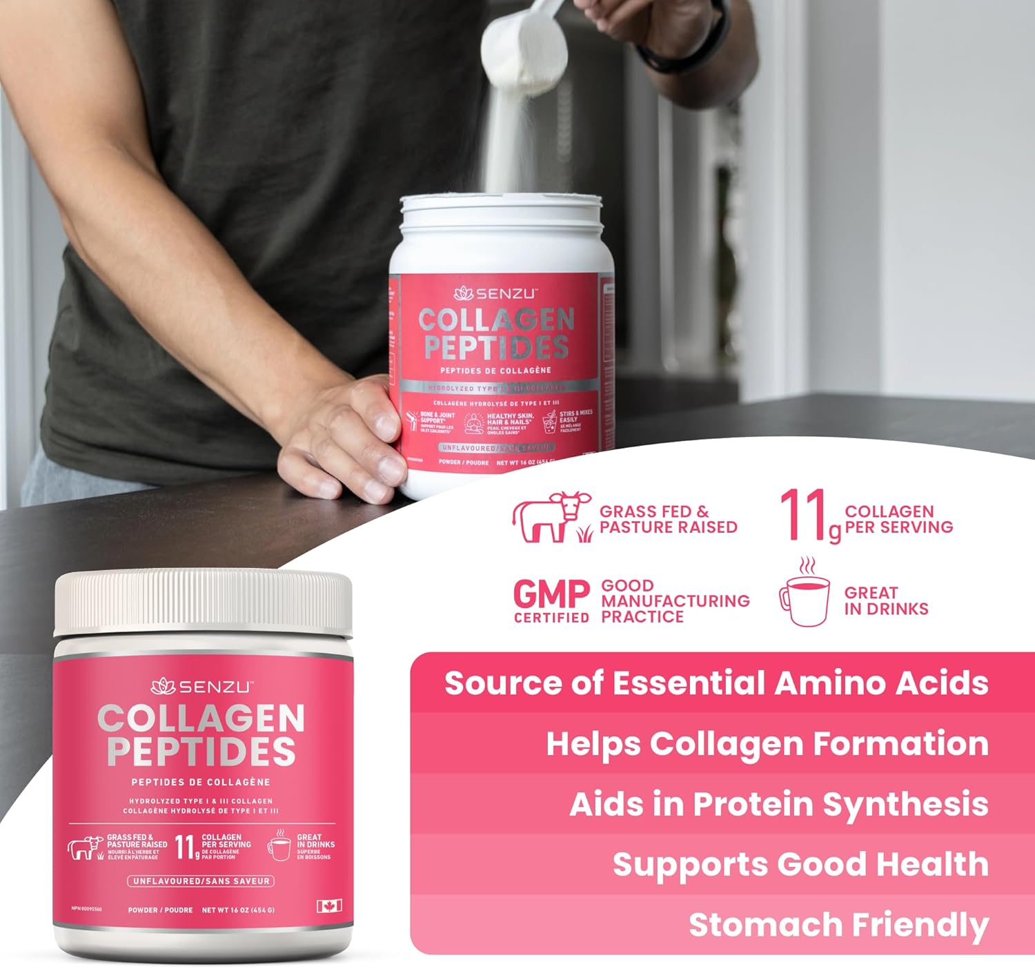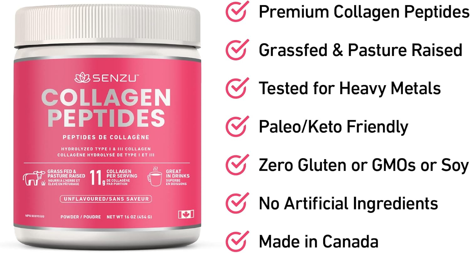 優質即溶膠原蛋白肽蛋白粉,有益於頭髮、皮膚、指甲和關節健康 - 水解,吸收更佳 | 加拿大製造,草飼、生酮、猶太潔食和清真認證 - 非基因改造、無麩質(454克/…