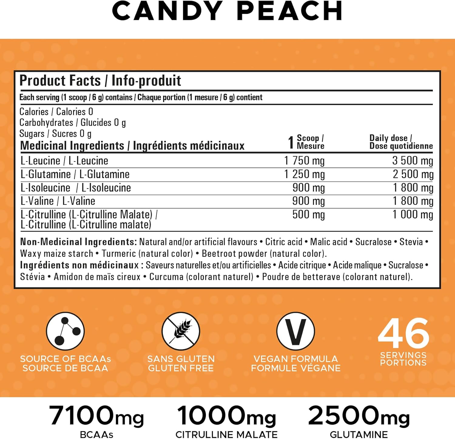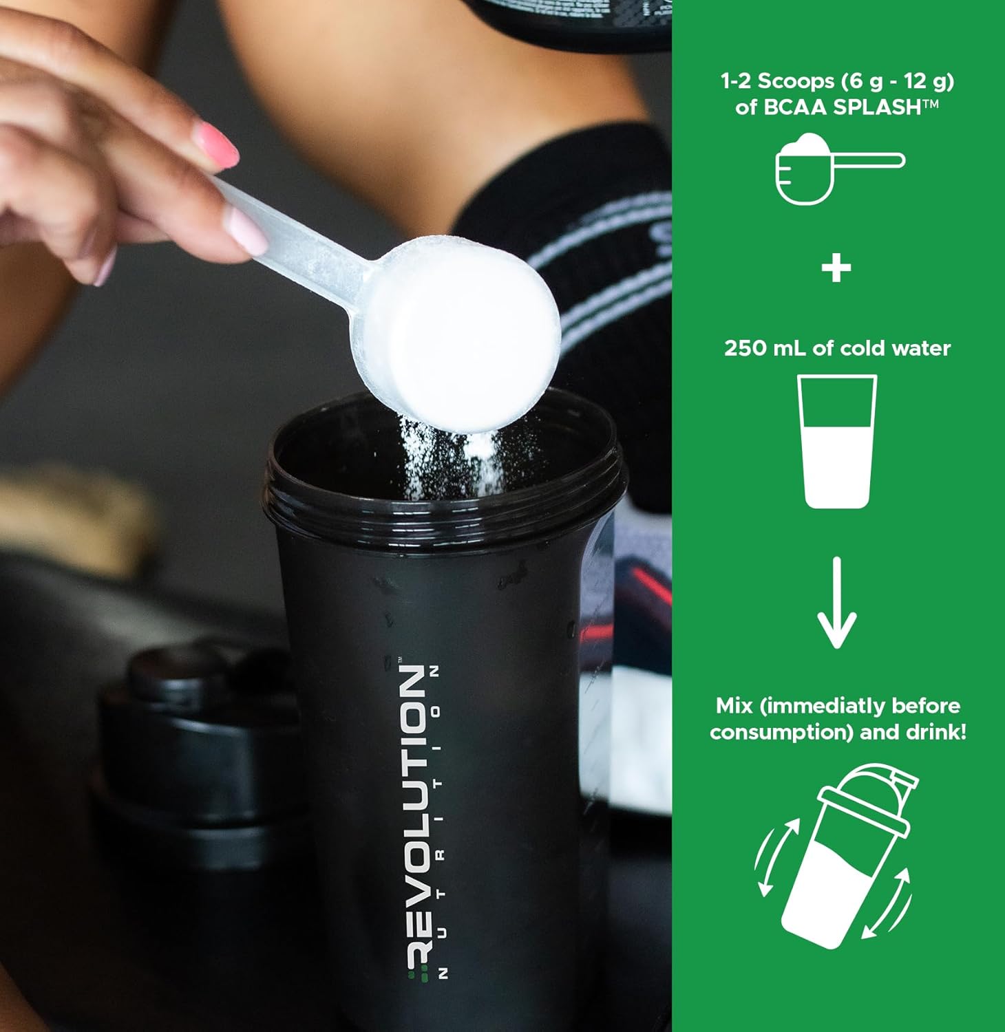 Revolution Nutrition, BCAA Splash,BCAA 粉,純素配方,零卡路里,無乳糖,肌肉恢復,運動後,7100 毫克支鏈氨基酸,1000 毫克瓜氨酸蘋果酸鹽,280 克,46 份(糖果桃子…