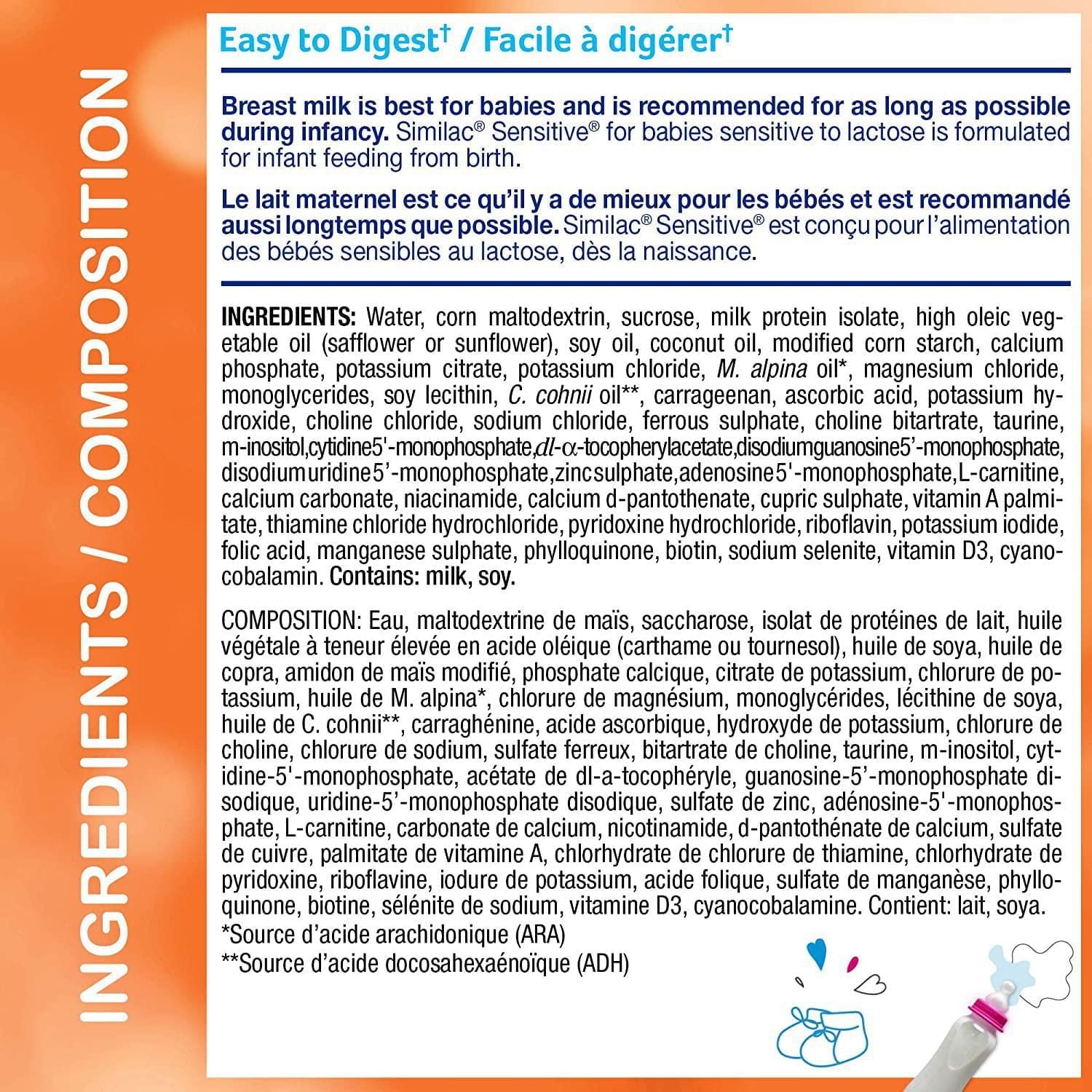 Similac 敏感嬰兒配方奶粉,非基因改造乳糖敏感嬰兒配方奶粉,濃縮液,0+ 個月,12x385 毫升,12 x 385 毫升