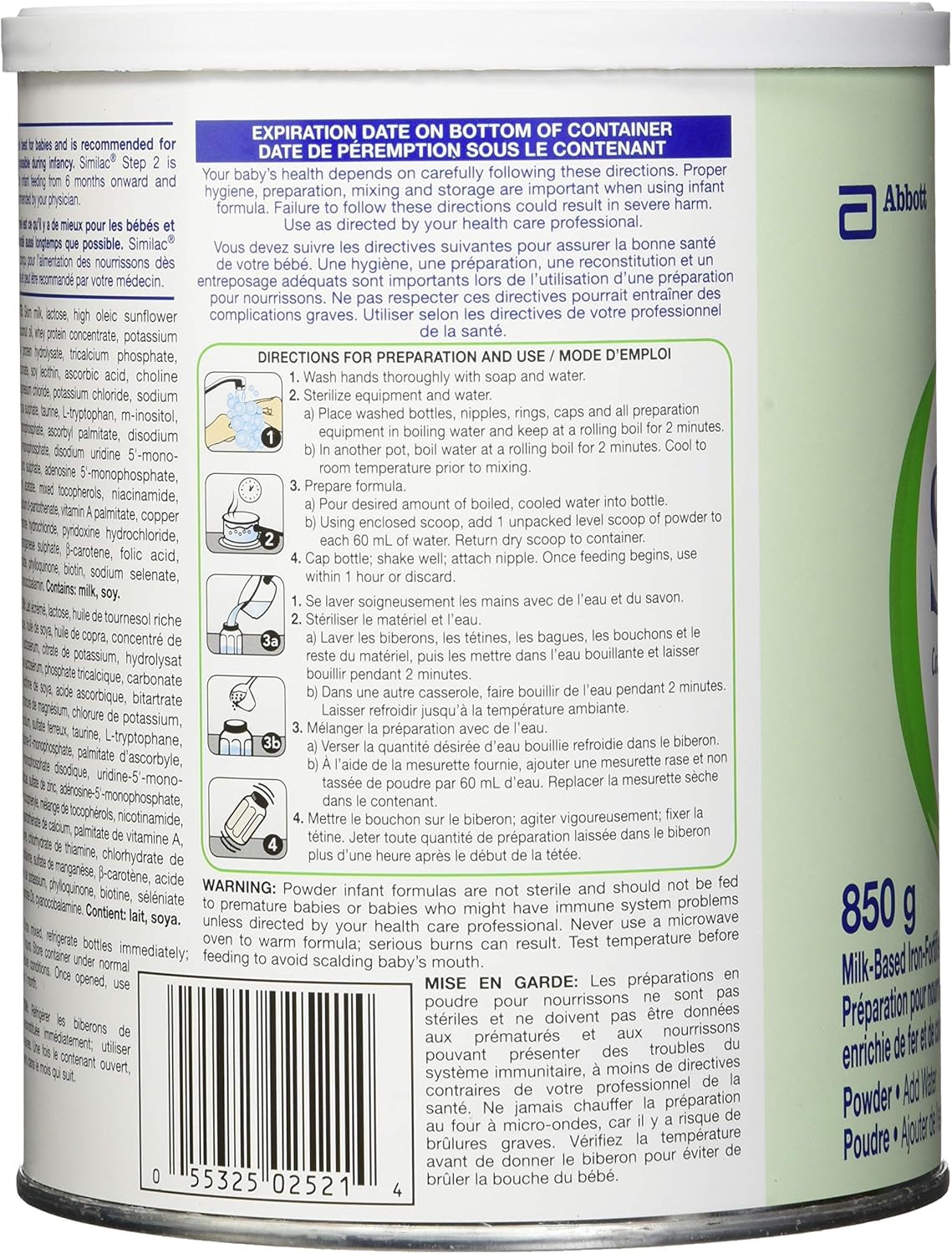 Similac 為您提供一系列專為滿足寶寶獨特需求而設計的產品。現在您的小寶寶已經開始吃輔食了,很難判斷他們是否攝取了足夠的營養。 Similac Step 2 專為 6 至 24 個月的寶寶設計,可陪伴您和您的寶寶過渡到穀物、嬰兒食品和牛奶等固體食物。在出生後的第一年下半年,您的寶寶需要更多的鈣來促進其快速成長的骨骼。 Similac Step 2 是一款富含鈣和鐵的嬰兒配方奶粉,其鈣含量比 Similac Step 1 高出約 50%。這款非基因改造*、易於消化的配方†將為您的寶寶在這個重要的成長發育時期提供支持。 Similac® Step 2 以這種易於使用的粉狀形式提供。您可以放心使用 Similac 滋養您的寶寶。 *成分非基因改造。 †與其他嬰兒配方奶粉相似。