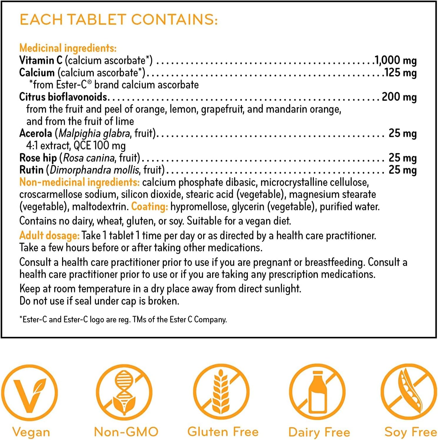 Sisu Ester-C 1000mg 片劑,24 小時免疫支持,酸性較低,比其他形式的維生素 C 更易吸收和保留,120 片,純素,非轉基因,無麩質,無乳製品,無大豆