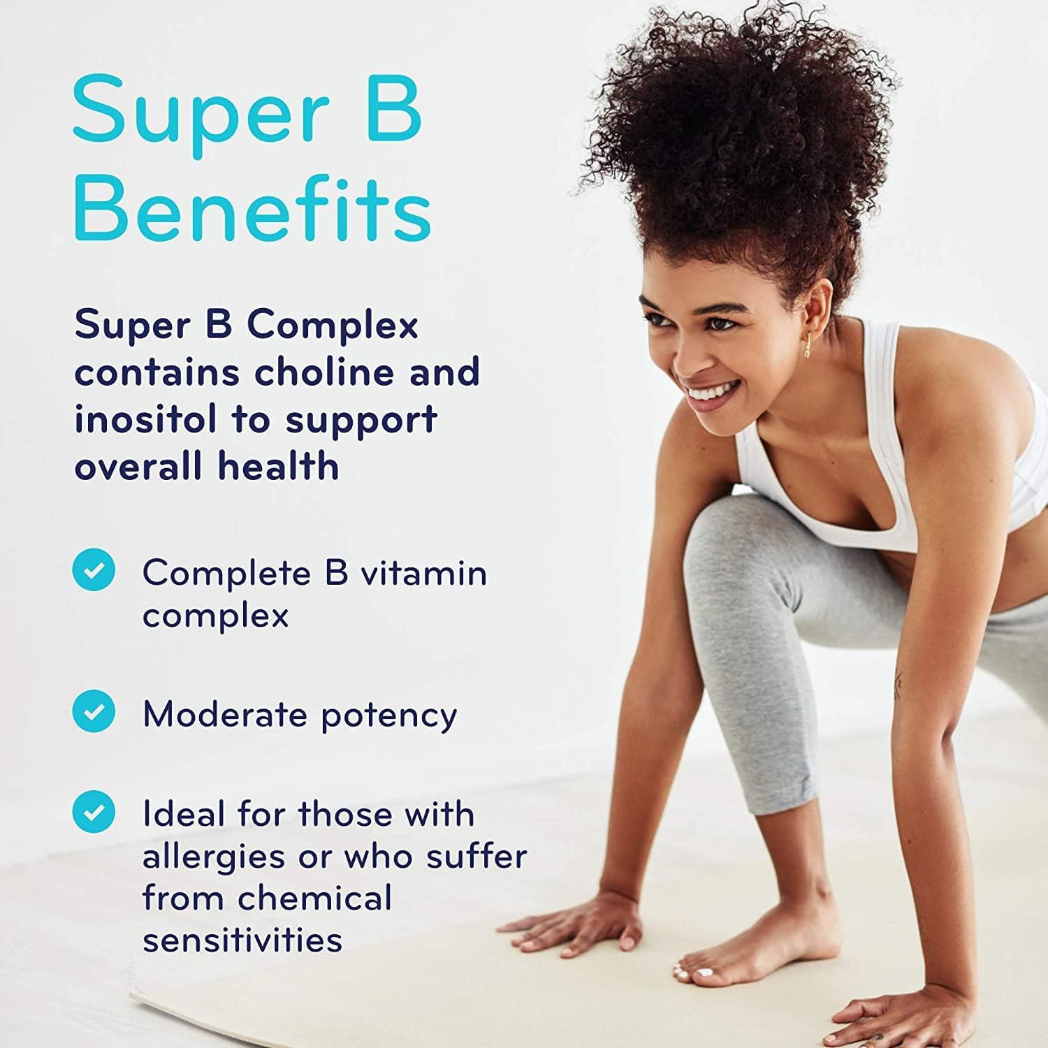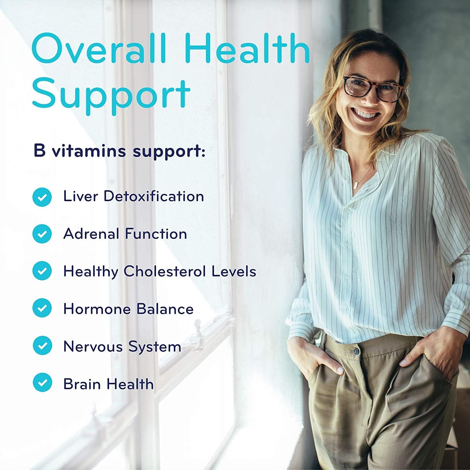 複合B群維生素;B群維生素有助於肝臟解毒、維持健康的膽固醇水平、腎上腺功能、荷爾蒙平衡以及大腦和神經系統健康。