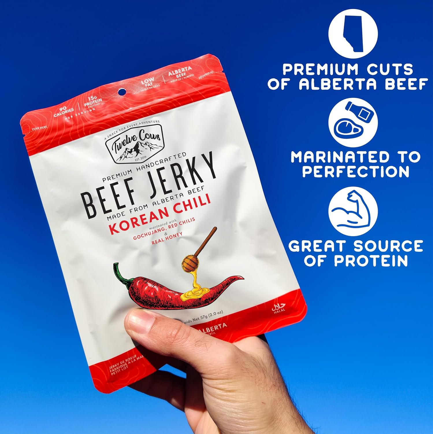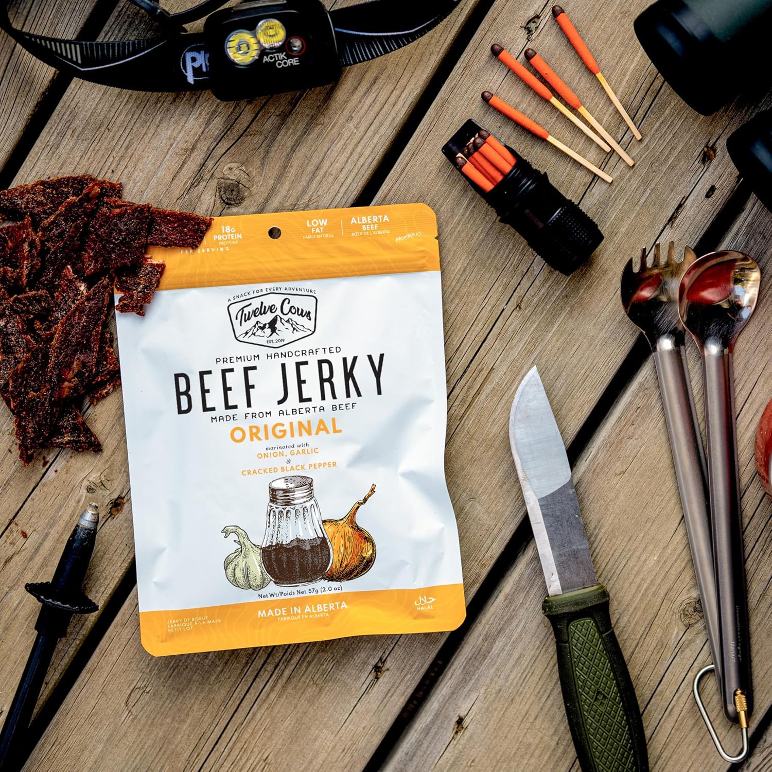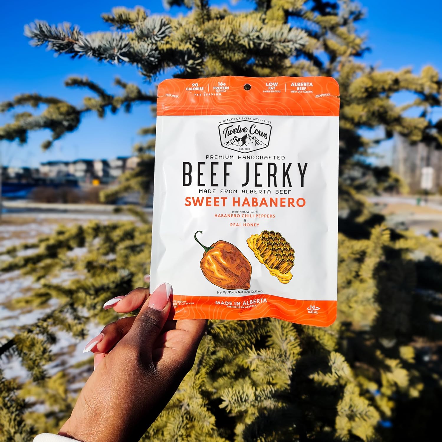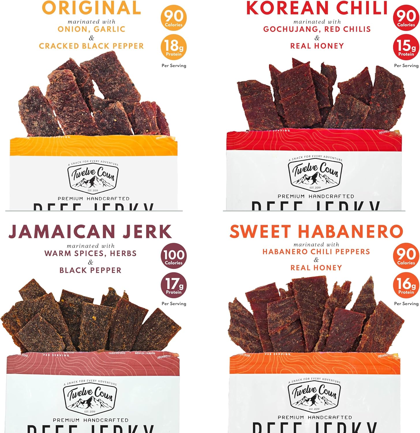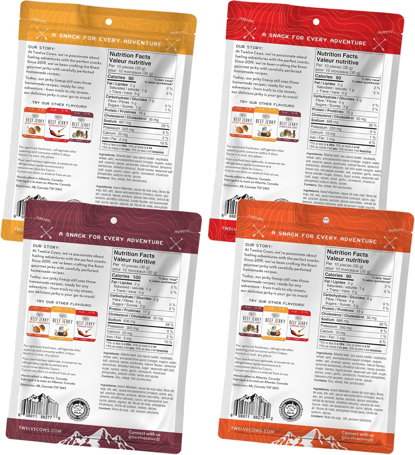 Twelve Cows 手工牛肉乾什錦裝,全肉優質切塊,阿爾伯塔牛肉,高蛋白,低碳水化合物,清真,生酮 - 57 克(4 包)