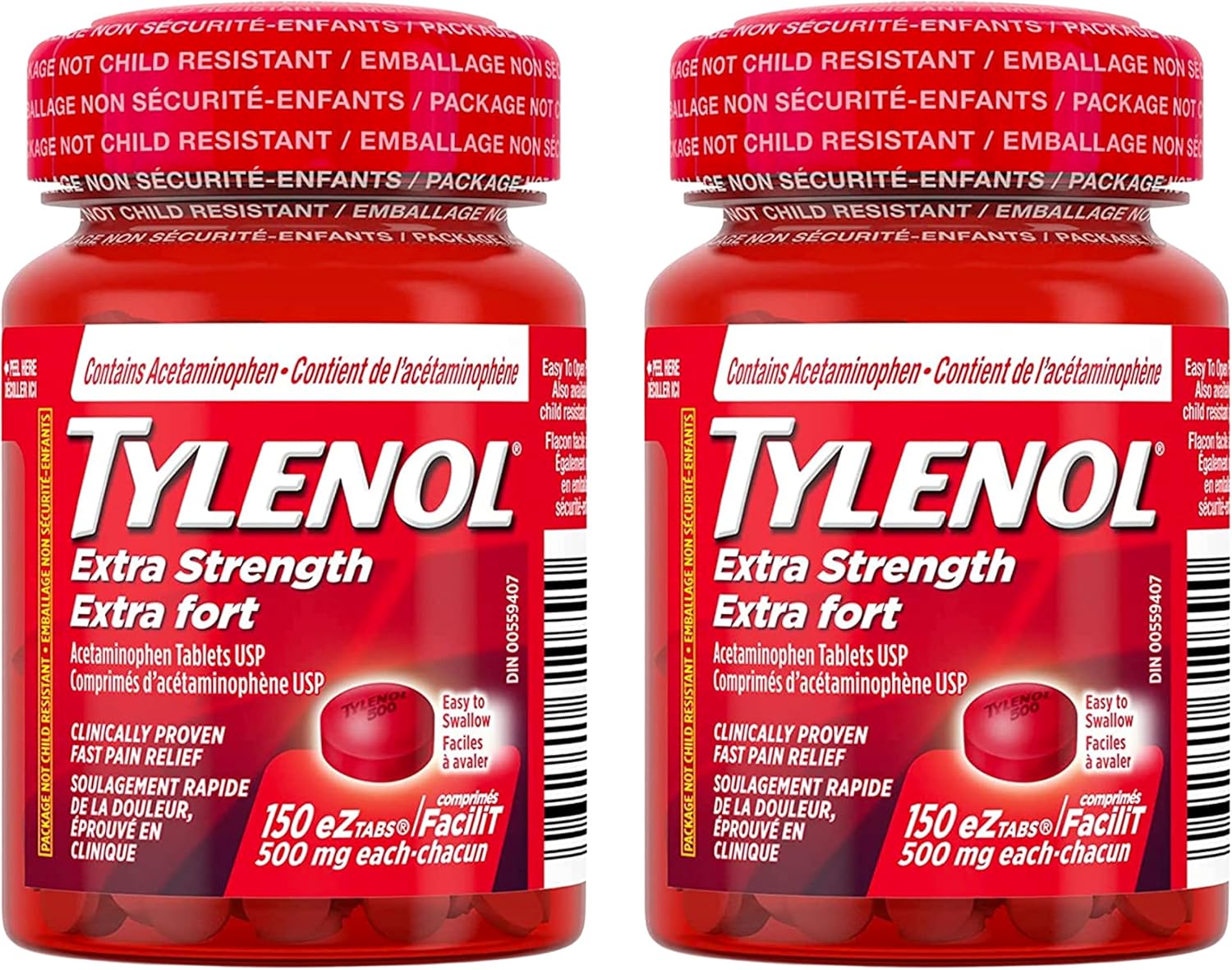 泰諾強效 500 毫克 EZTABS 兩片裝,強效緩解疼痛,溫和呵護您的胃,快速緩解頭痛、全身疼痛和發燒。每片泰諾強效片含 500 毫克對乙醯氨基酚,可快速有效緩解疼痛和發燒。這些易吞嚥的藥片可快速有效緩解頭痛、緊張性頭痛、輕度至中度偏頭痛、輕度至中度關節炎疼痛、輕微肌肉扭傷和拉傷、經痛以及感冒和流感引起的疼痛。泰諾強效 500 毫克 EZTABS 有 10 片、24 片、50 片、100 片、150 片、200 片等規格,我們全新的兩片裝含有 300 片。