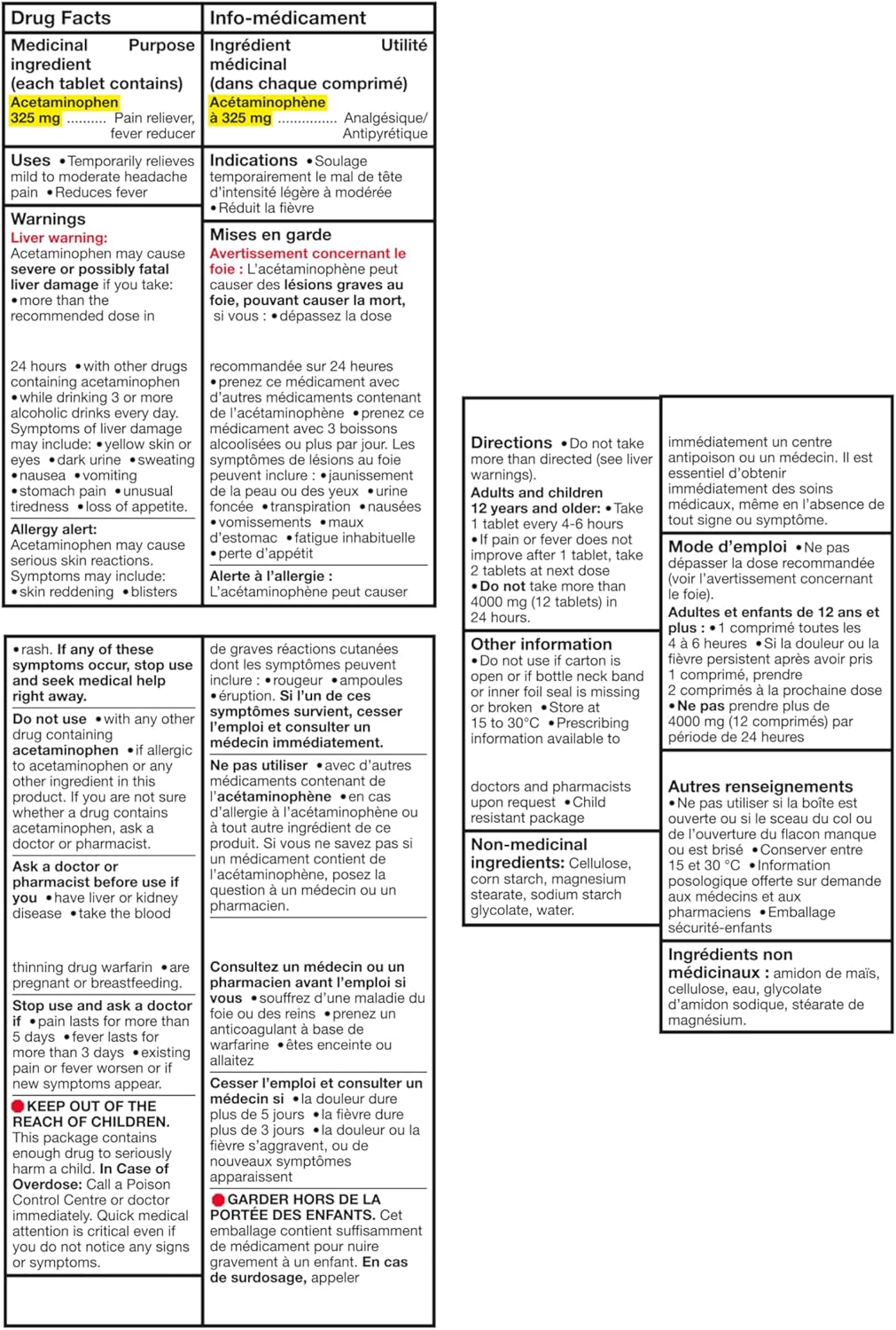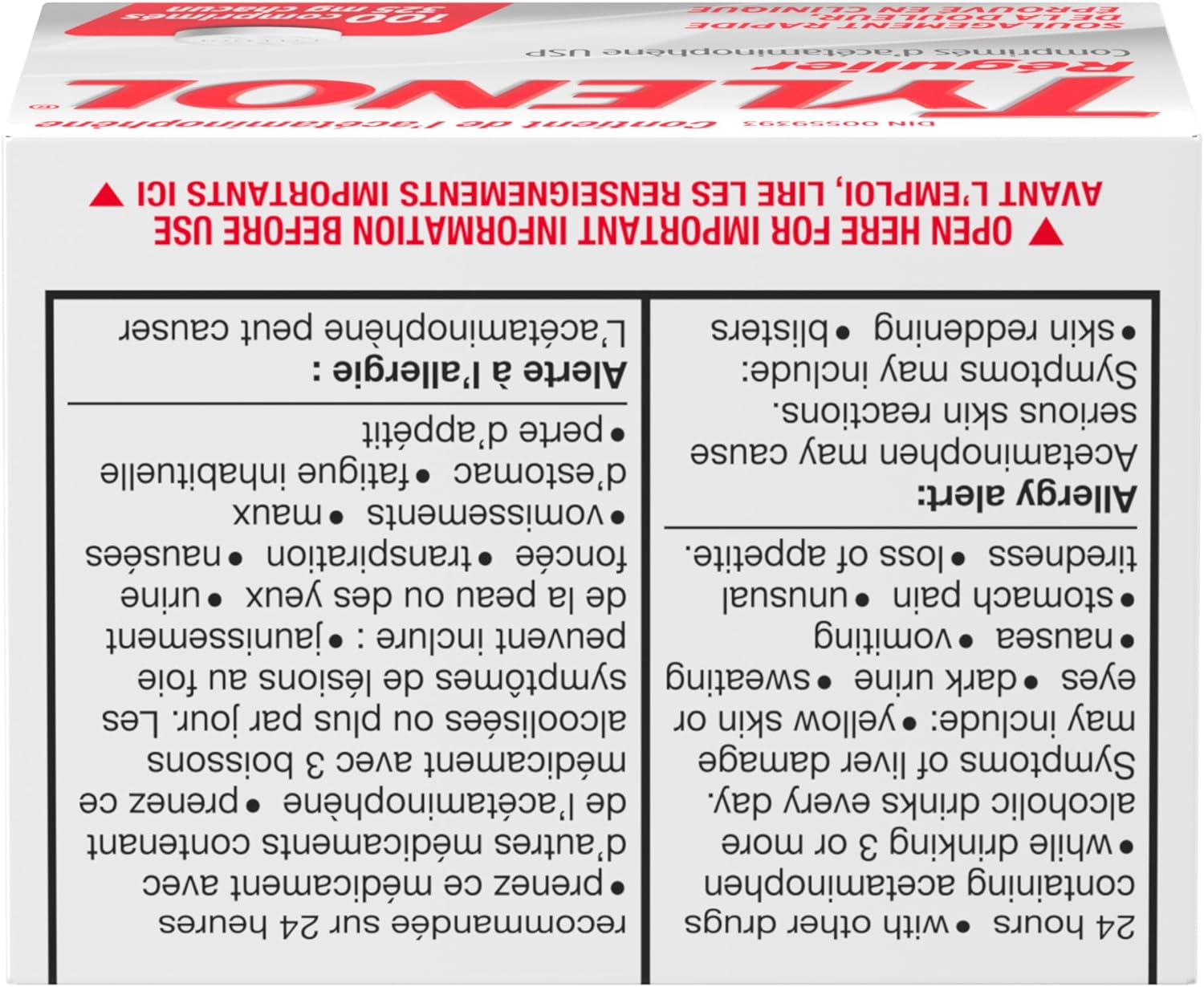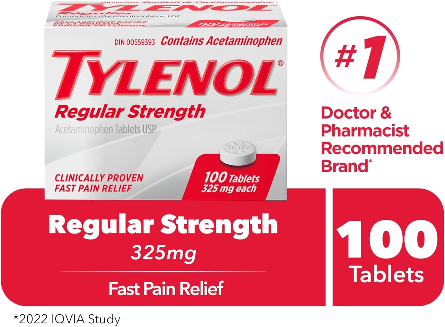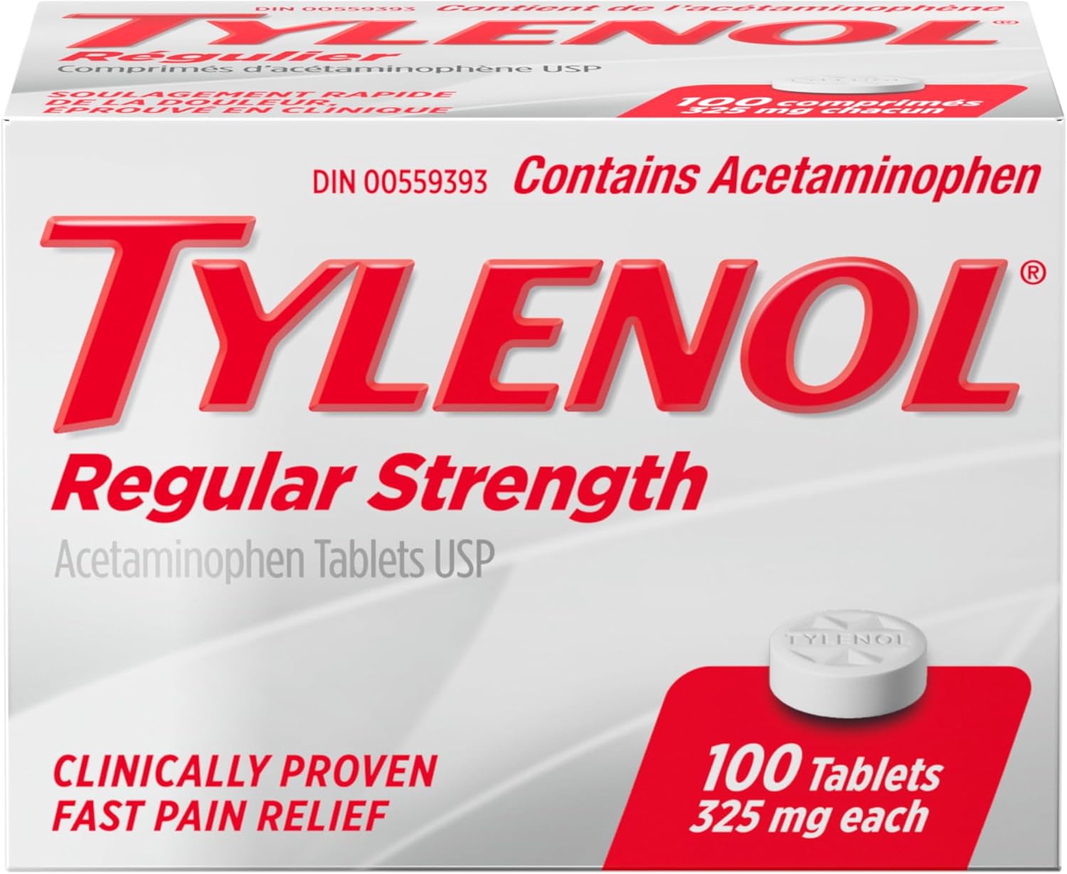 泰諾常規強度 325 毫克片劑有效緩解頭痛、全身疼痛和發燒,強效止痛,溫和呵護您的胃。每片泰諾常規強度 325 毫克片劑含有 325 毫克對乙醯氨基酚,可有效緩解疼痛和退燒。這些片劑可暫時退燒,緩解頭痛、緊張性頭痛、輕度至中度偏頭痛;輕度至中度關節炎疼痛、輕微肌肉扭傷和拉傷、經痛;以及感冒和流感引起的疼痛。泰諾常規強度 325 毫克片劑每瓶 100 片。