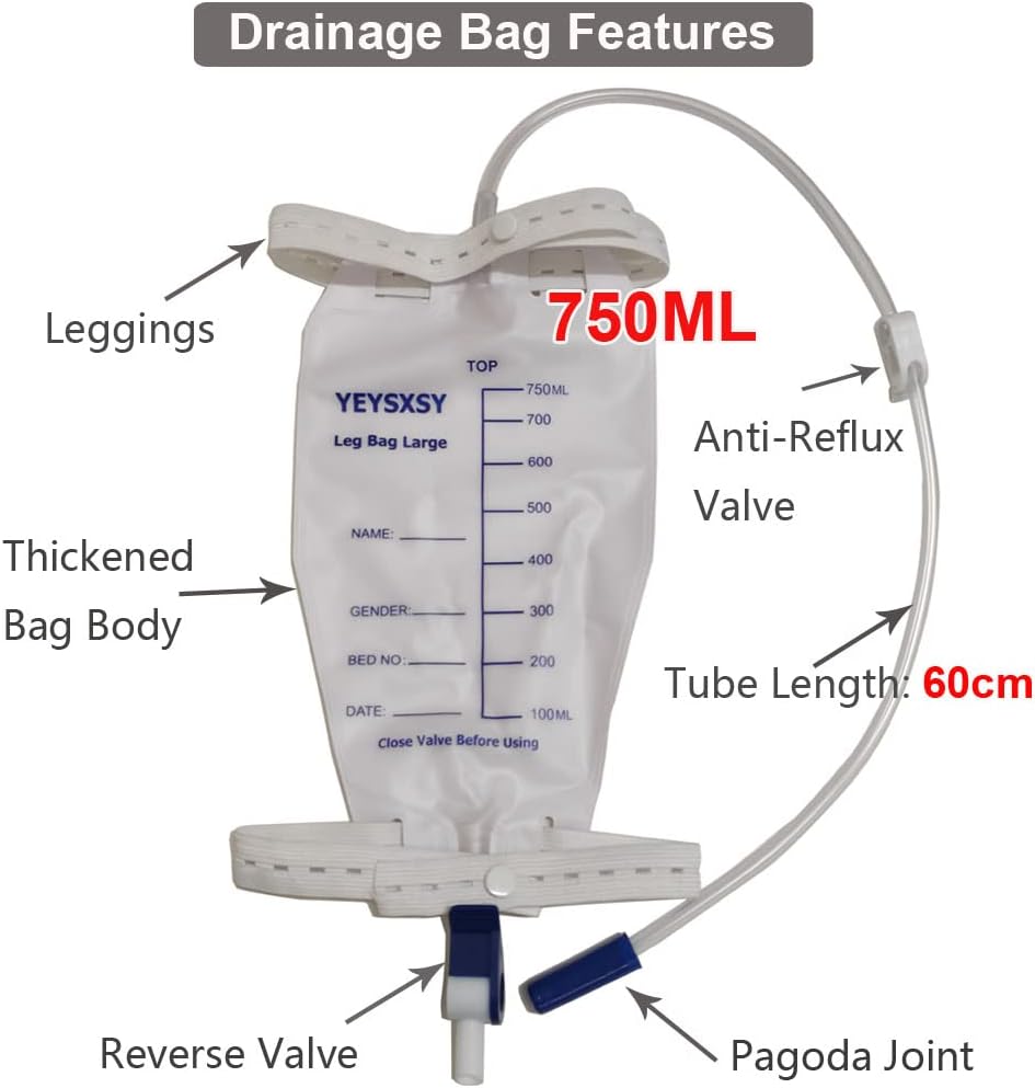 帶防反流室的尿液引流袋,750 毫升/25 盎司 25 英寸引流管,豪華織物腿袋(4 個裝)