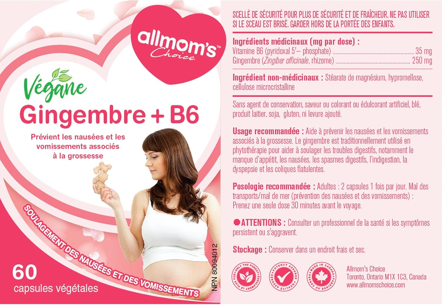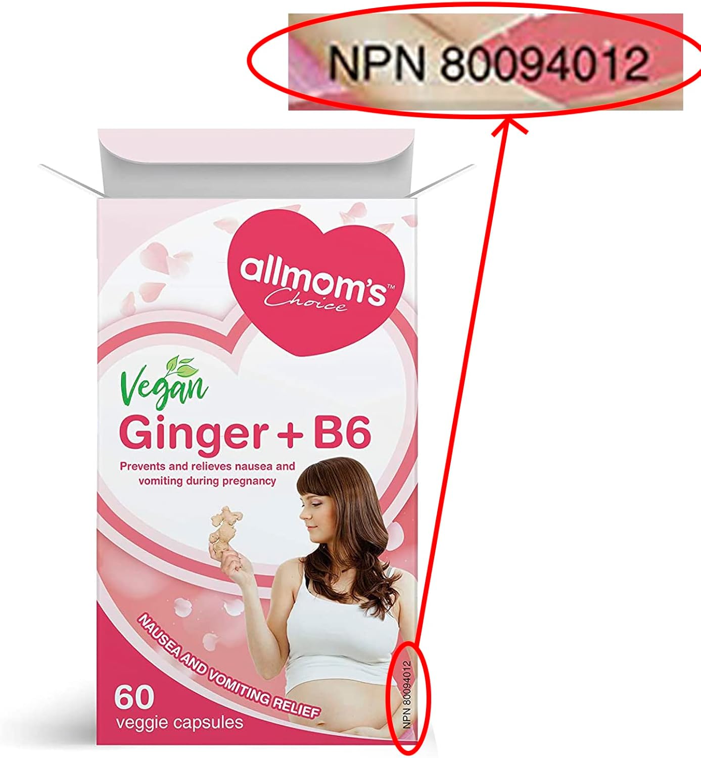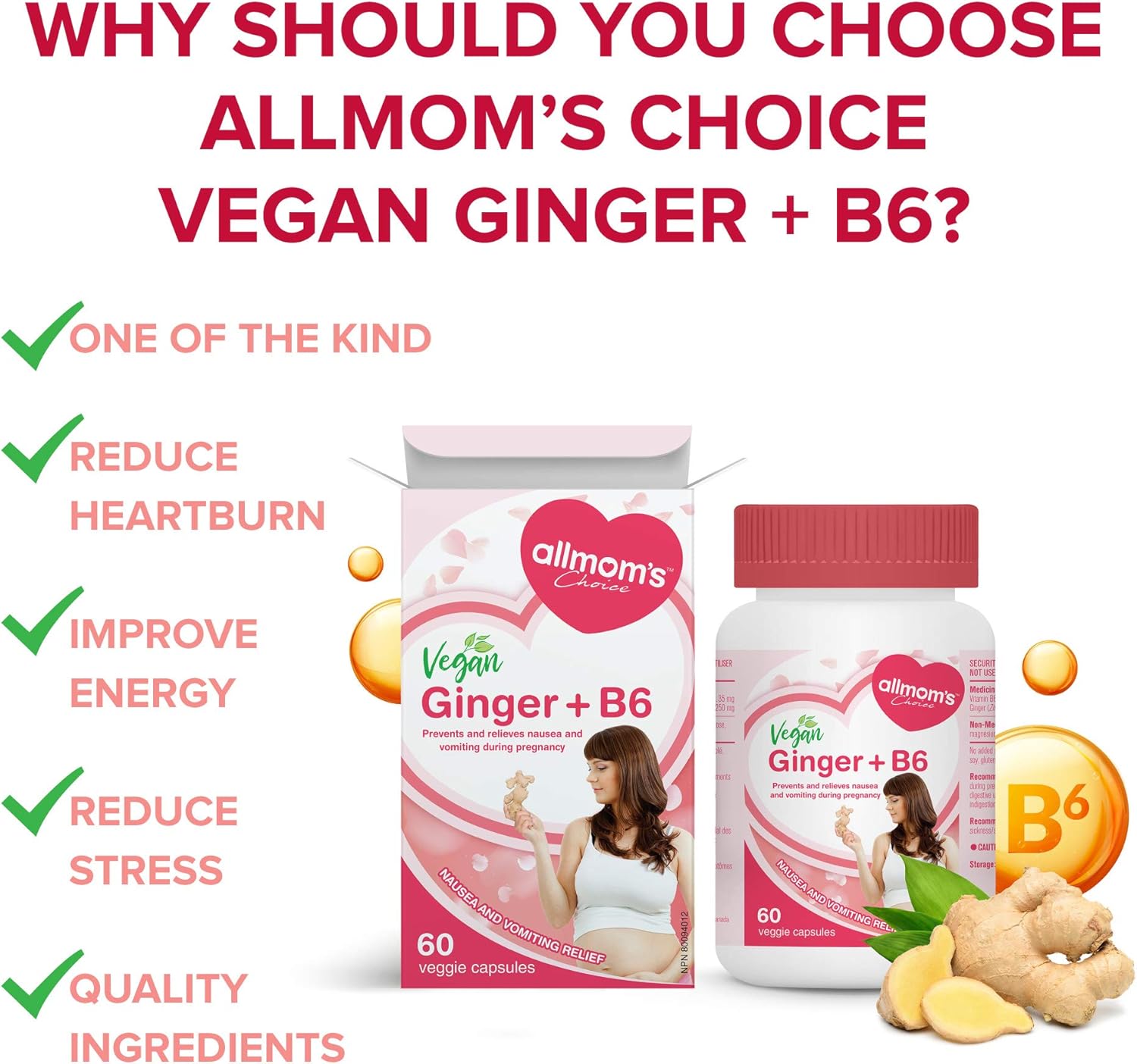 純素薑 + B6(60 粒膠囊),天然療法,可預防和緩解噁心和孕吐,減少胃灼熱,增進食慾,Allmom’s Choice 懷孕止吐產品